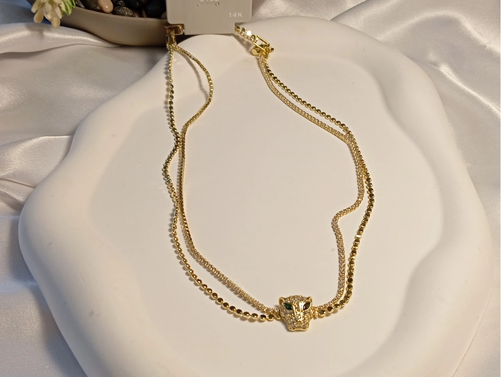 14 Ayar Altın Kaplama Safir Gözlü Panter Kolye – Euro Aksesuar