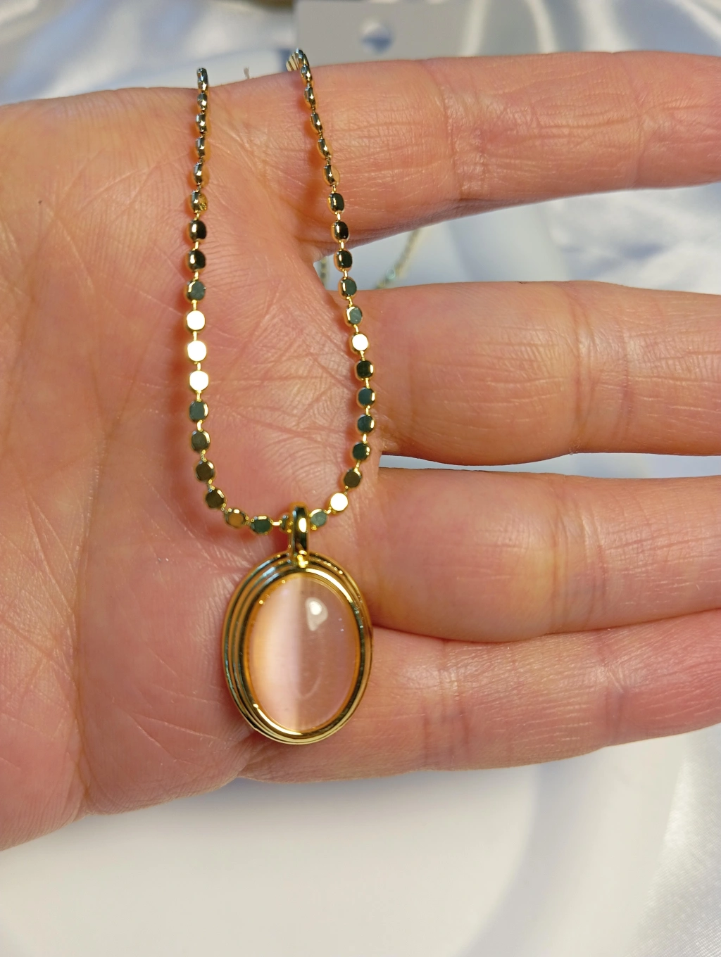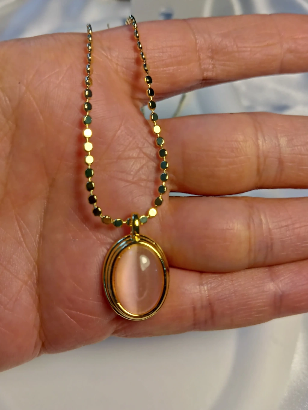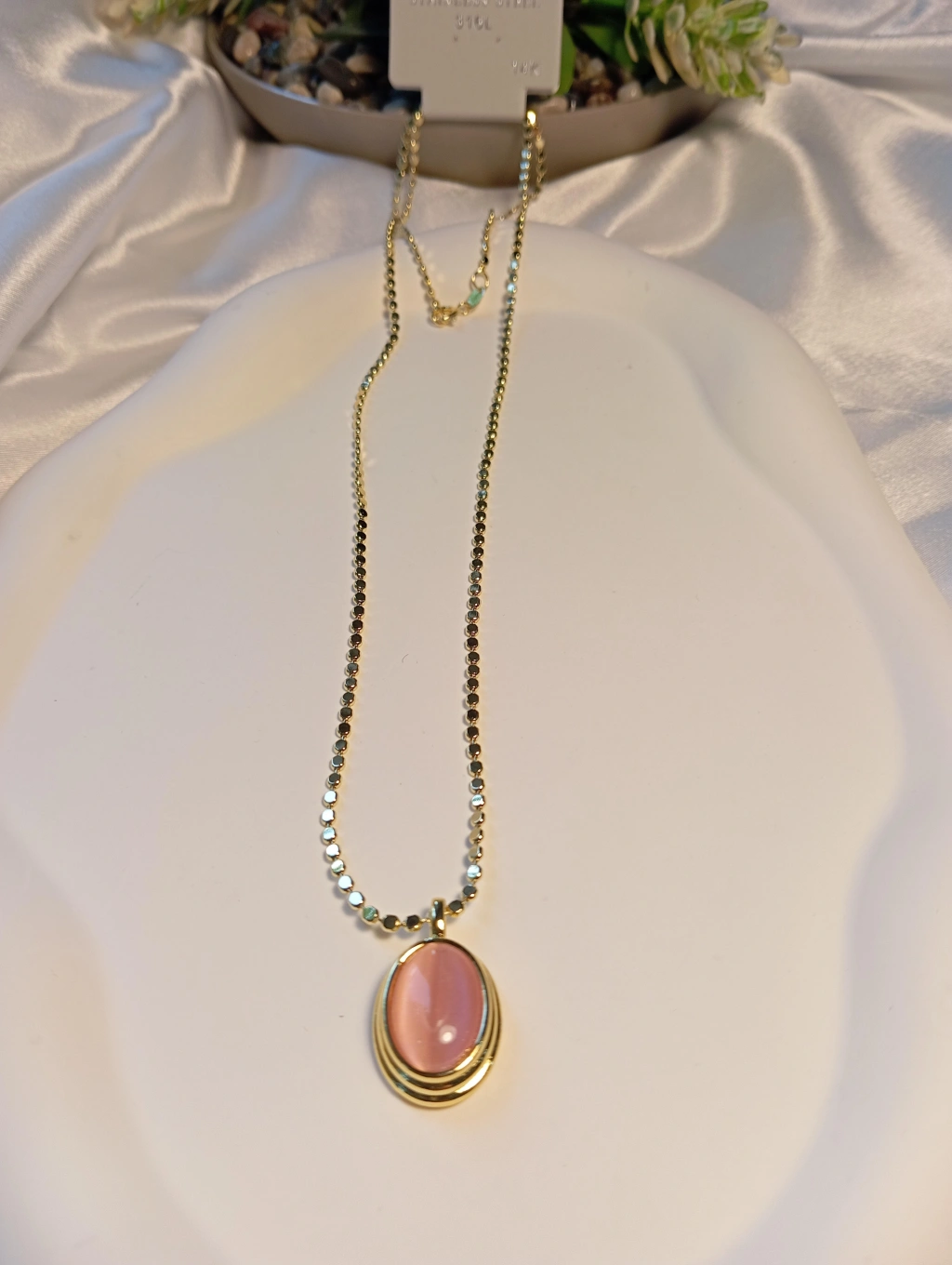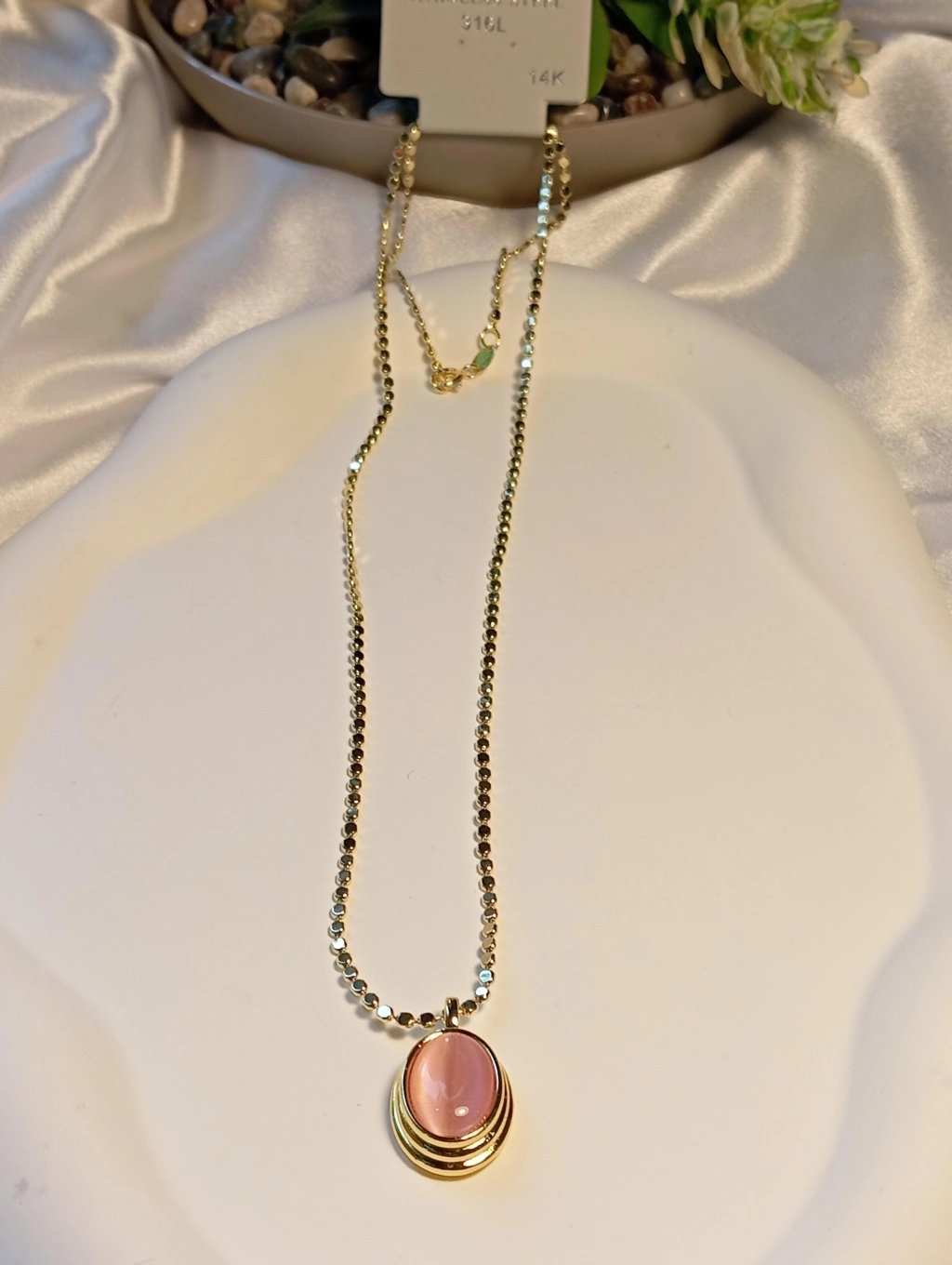 Euro Aksesuar 14K Kaplama Pembe Taşlı Ezme Zincir Çelik Kolye