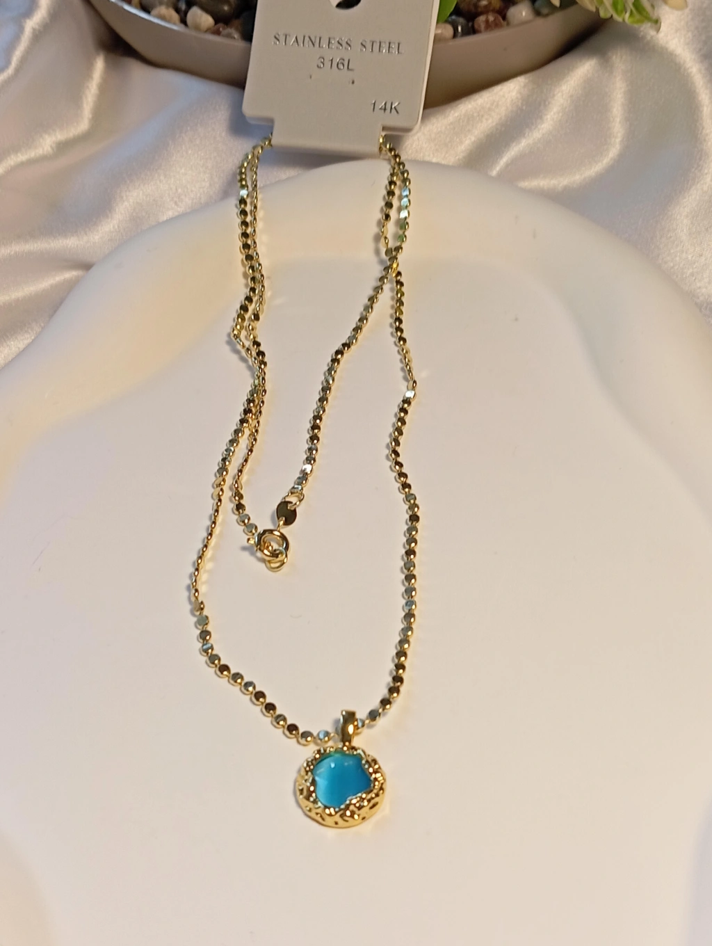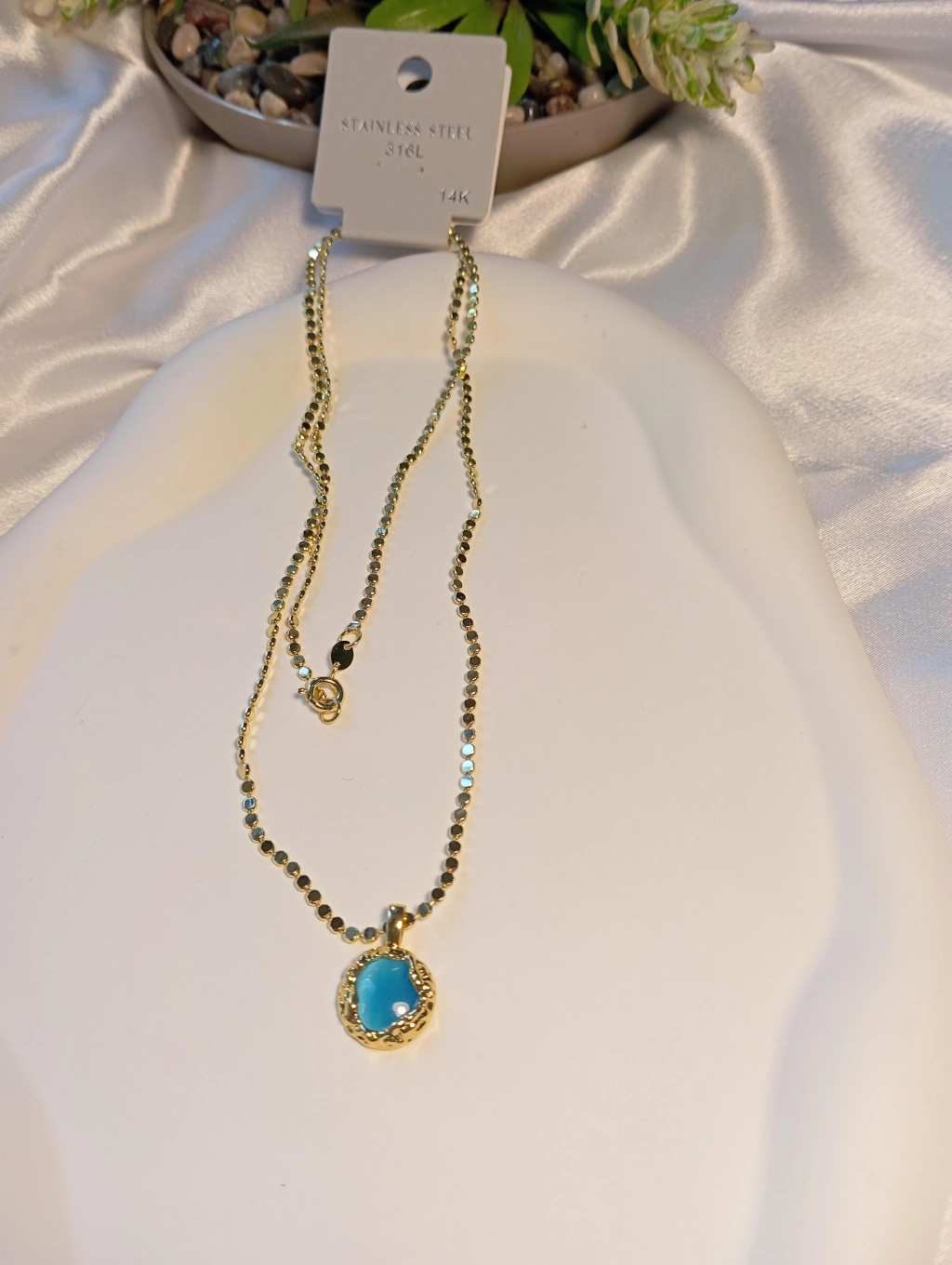 Bu özel 14K kaplama çelik ve Mavi Taş Detaylı kolyenizin parlaklığını ve mavi rengin canlılığını uzun süre koruması için lütfen aşağıdaki talimatlara uyun: