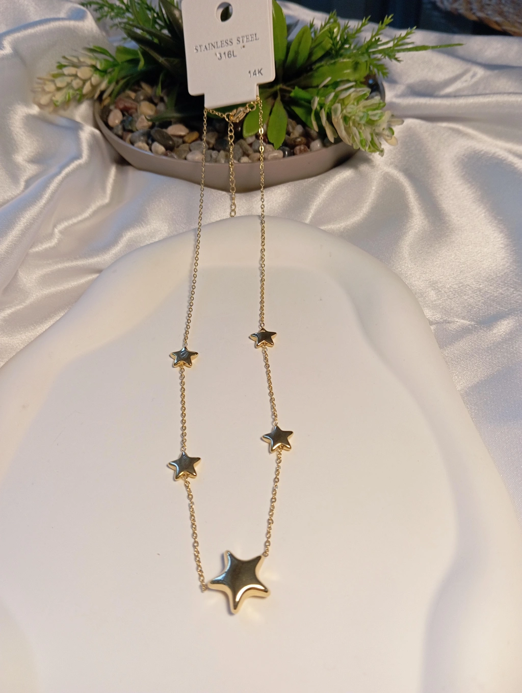 14K Kaplama Çelik Yıldız Detaylı Kolye - 45 cm Euro Aksesuar