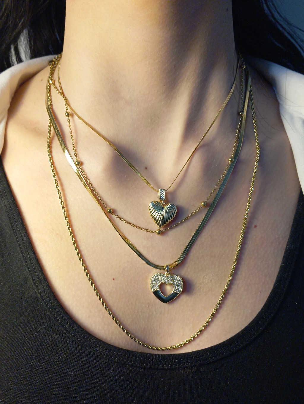 Zarafetin Dörtlü Kombini: 14K Altın Kaplama Kalp Detaylı ve Zirkon Taşlı Kolye Seti