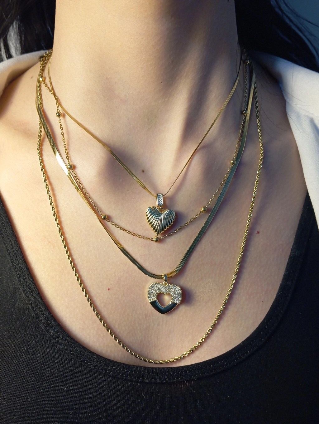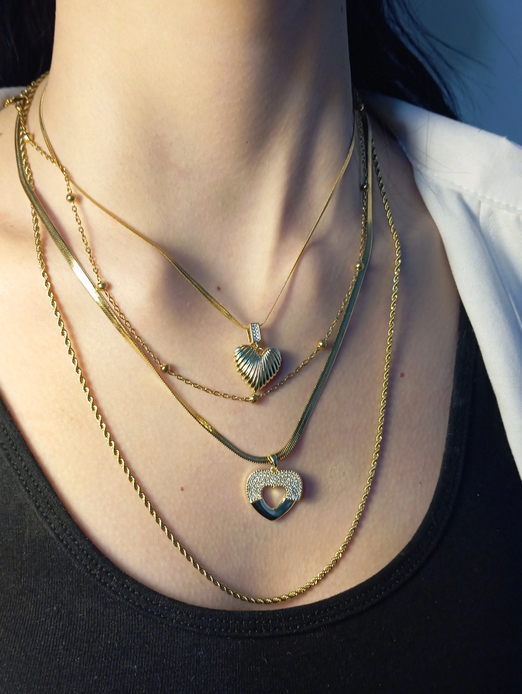 4 Katmanlı Tasarım: Farklı zincir modelleri ve uçların bir araya gelmesiyle oluşturulan bu hazır kombin, "layering" modasını zahmetsizce uygulamanızı sağlar.