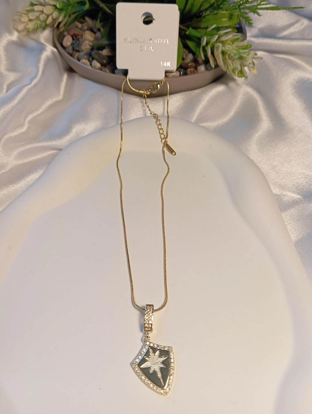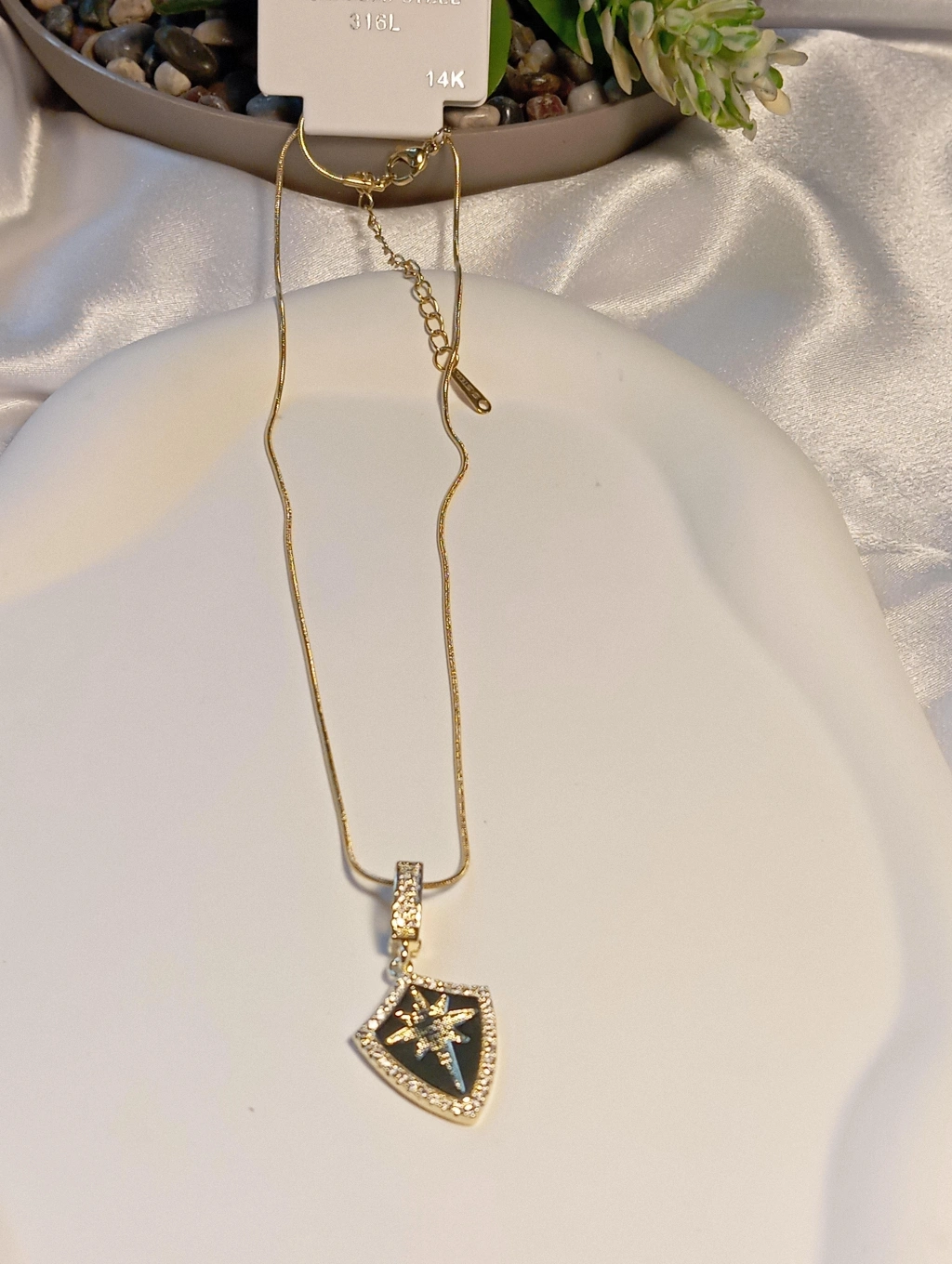 14K Kaplama Kutup Yıldızı Detaylı Çelik Kolye - 45 cm Euro Aksesuar