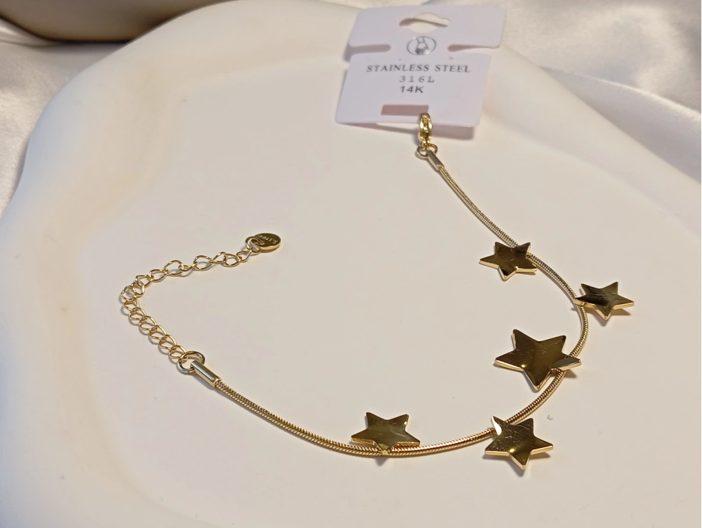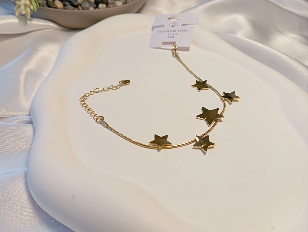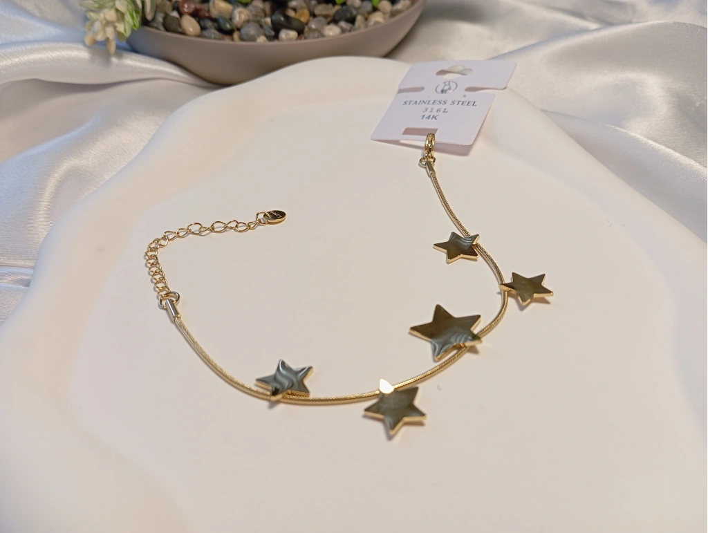 14K Altın Kaplama Çelik Yıldız Figürlü Sıralı Bileklik