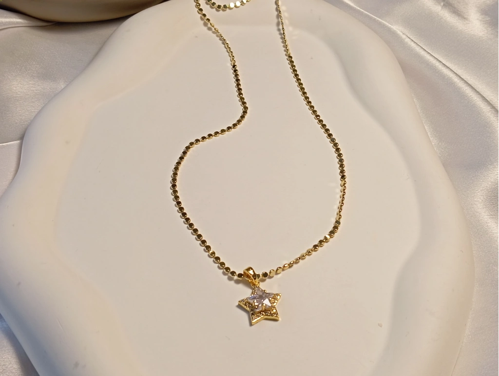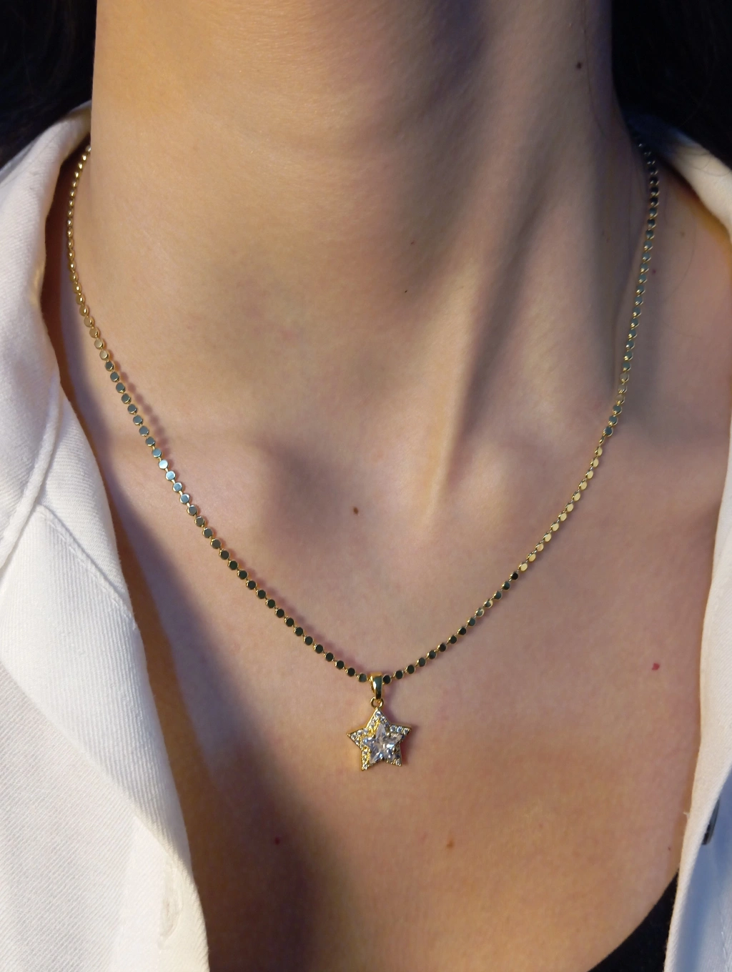 316L Çelik Gold Baget Zirkon Taşlı Yıldız Kolye (Özel Tasarım Zincir) – Euro Aksesuar