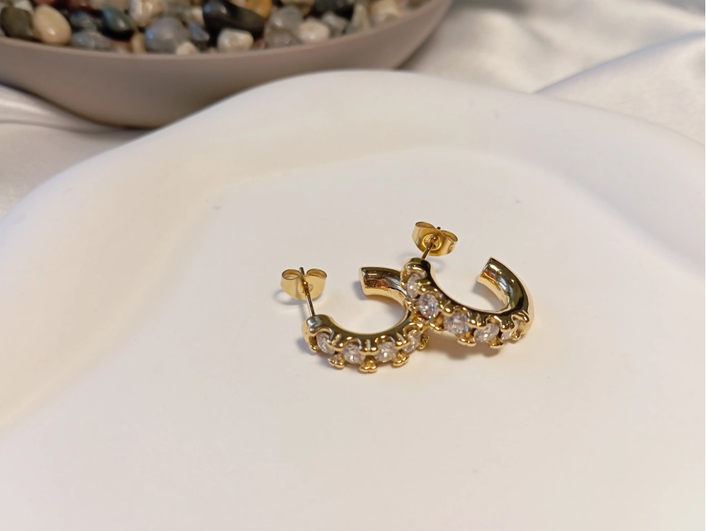 Şıklığı ve dayanıklılığı bir arada sunan bu yarım halka küpe, yüksek kaliteli