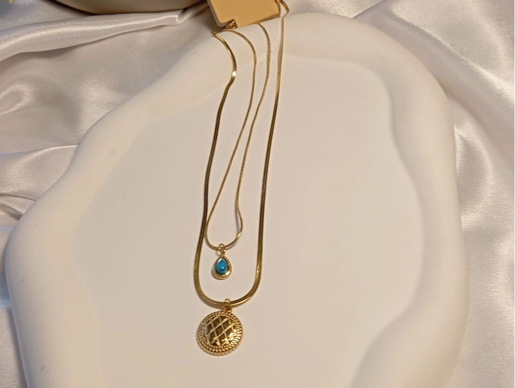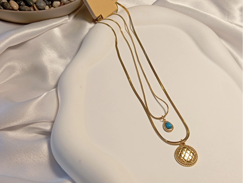 Tarihin İmzası ve Doğanın Rengi: Antik Desenli Madalyon ve Turkuaz Taşlı Çelik Kolye
