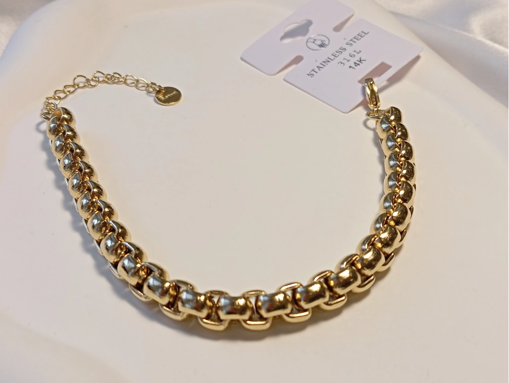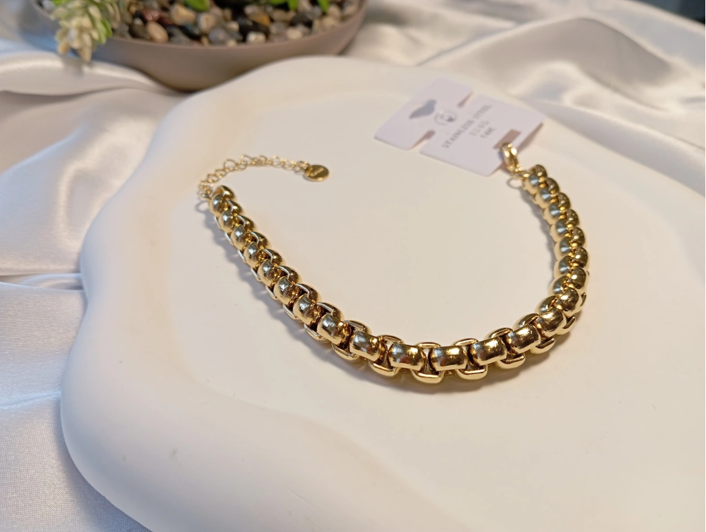 Minimalist çizgileri dolgun bir formla birleştiren Bold Zincir Bileklik, stilinde net bir tavır sergilemek isteyen kadınlar için tasarlandı. Tek başına veya diğer takılarınızla kombinleyerek iddialı bir görünüm yakalayabilirsiniz.