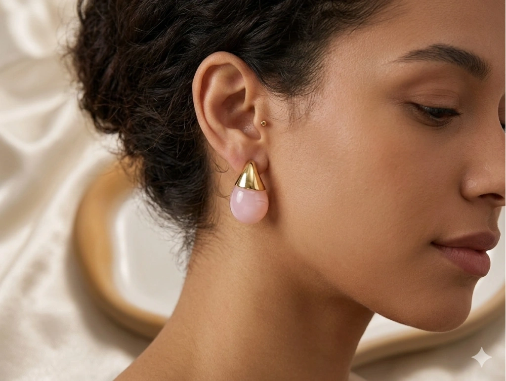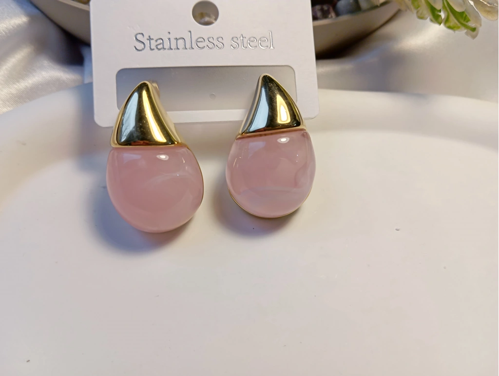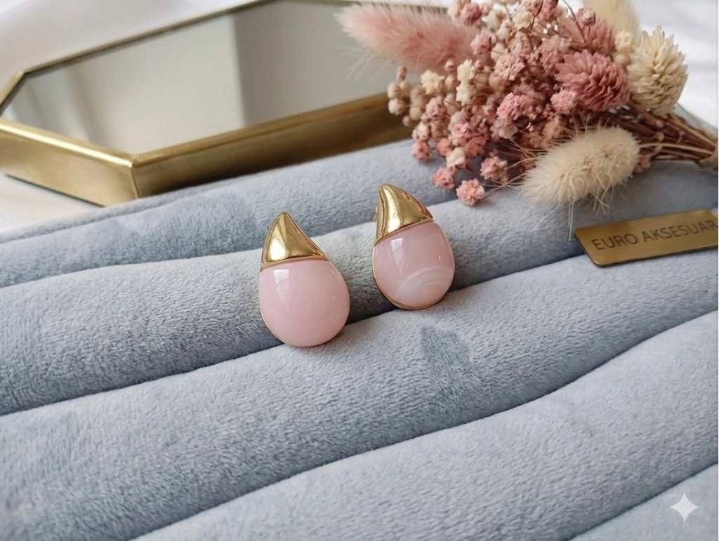 Stilinize zarif ve modern bir dokunuş katın! Bu şık küpeler, yüksek kaliteli paslanmaz çelikten üretilmiş olup, 3 cm'lik ideal boyuyla hem günlük hem de özel gün kombinleriniz için mükemmeldir. Altın rengi metal kısmı ile pembe damla şeklindeki pürüzsüz taşın uyumu, minimalist bir şıklık sunar. Antialerjik yapısı sayesinde hassas ciltler için uygundur. Hafif tasarımıyla gün boyu konfor sağlar.