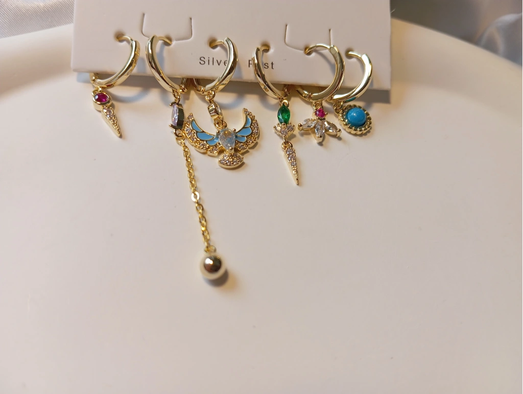 Euro Aksesuar 6'lı Mistik Figürlü Zirkon Taşlı Pirinç Küpe Seti - Altın Kaplama Çoklu Kıkırdak ve Halka Küpe Paketi