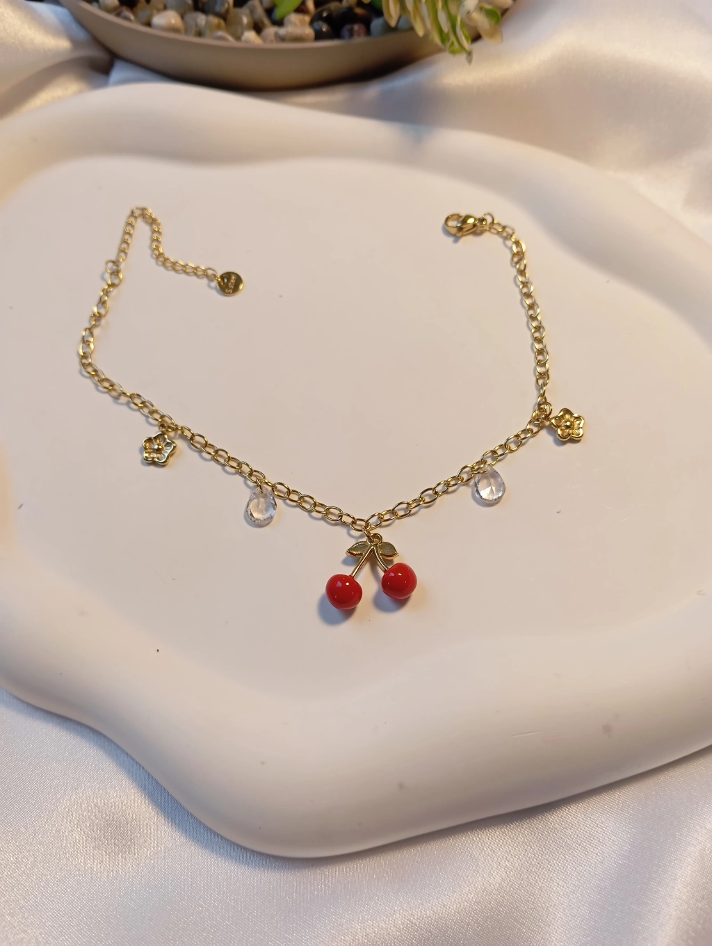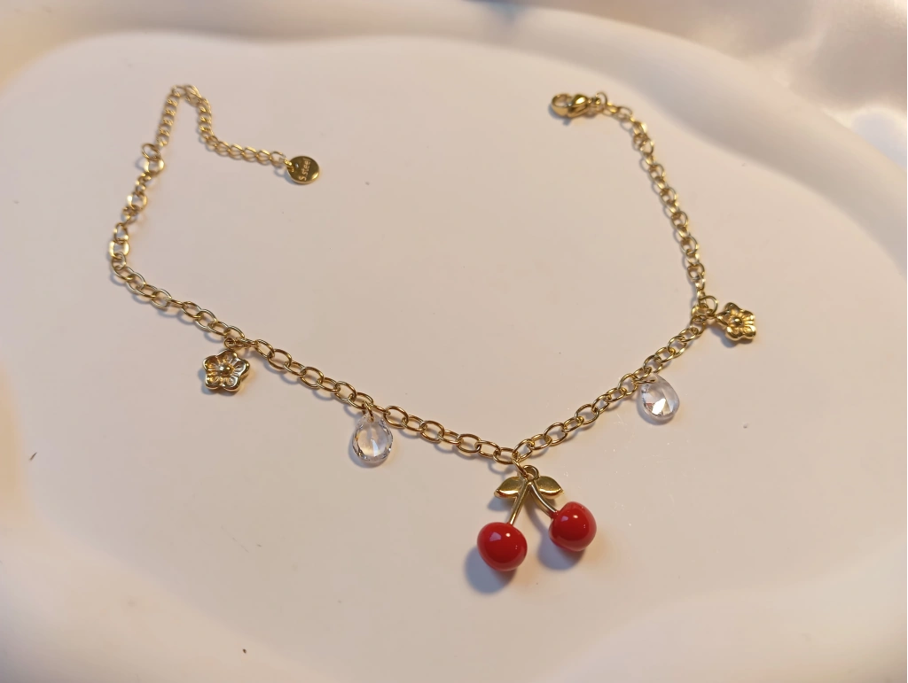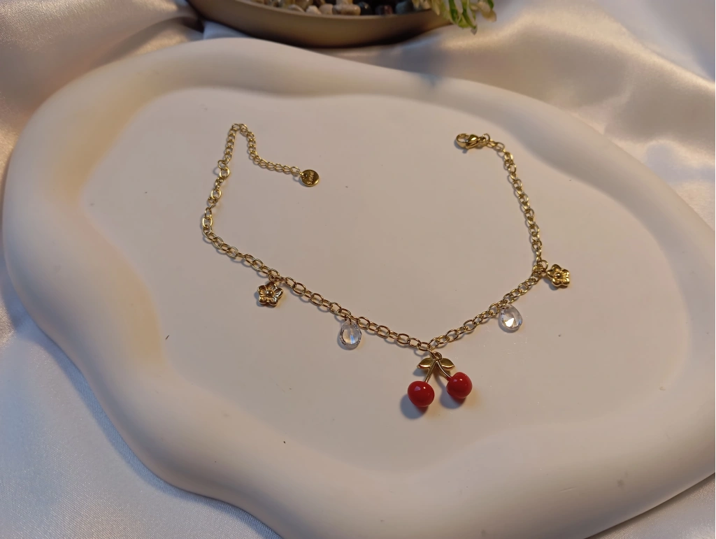 Tarzınıza tatlı bir dokunuş katın! Euro Aksesuar’ın yeni sezon koleksiyonunda yer alan bu kiraz figürlü halhal, enerjinizi yükseltmek için tasarlandı. 316L cerrahi çelik üzerine yüksek kalite 14 ayar altın kaplama ile üretilmiştir.