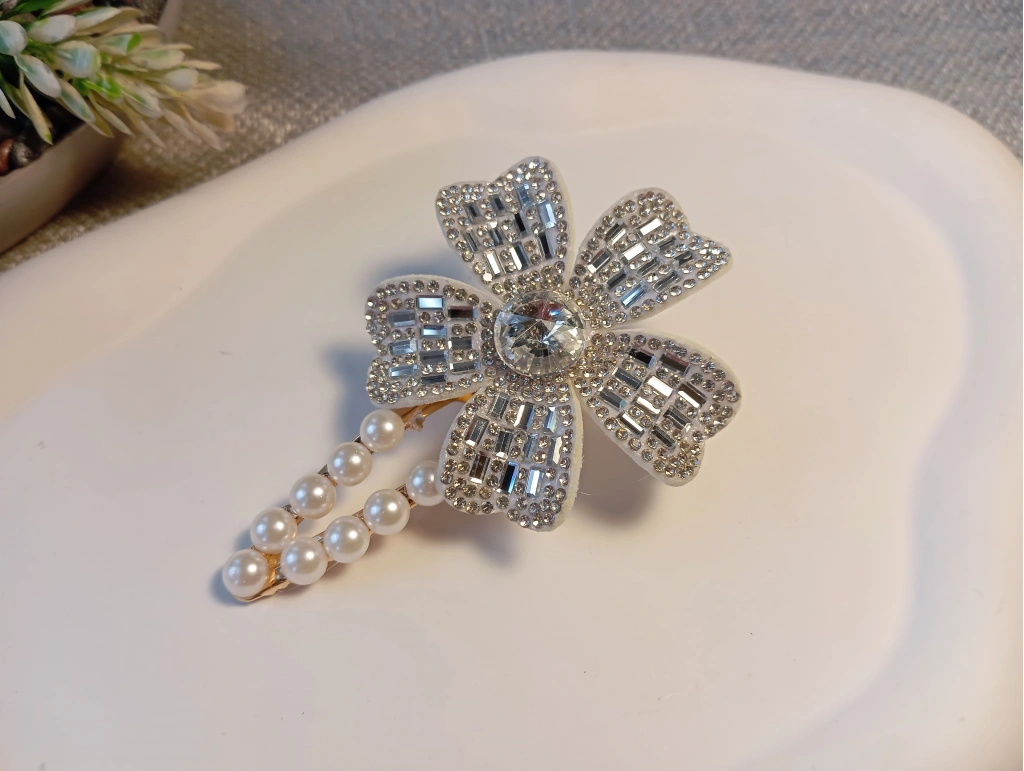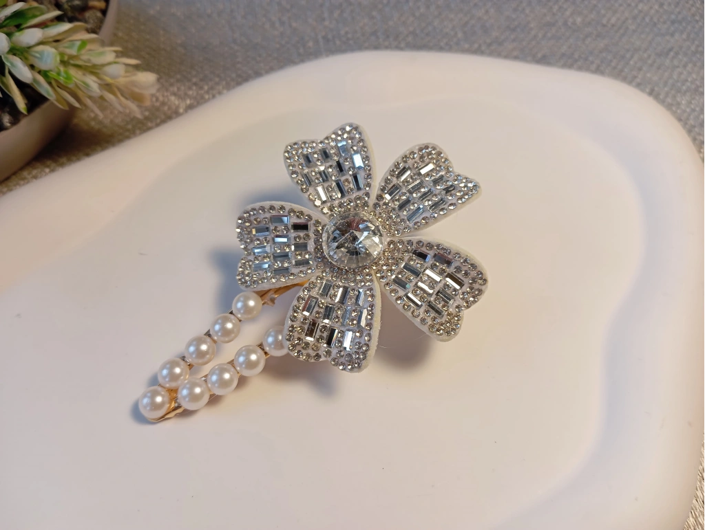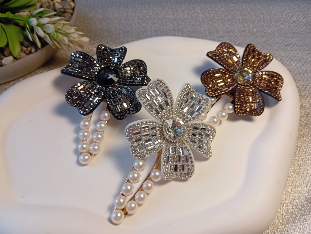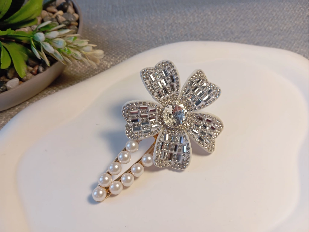 Euro Aksesuar Kristal Taşlı Çiçek Figürlü ve İncili Lüks Yan Toka
