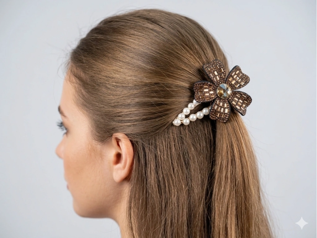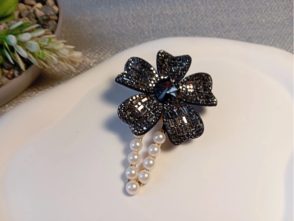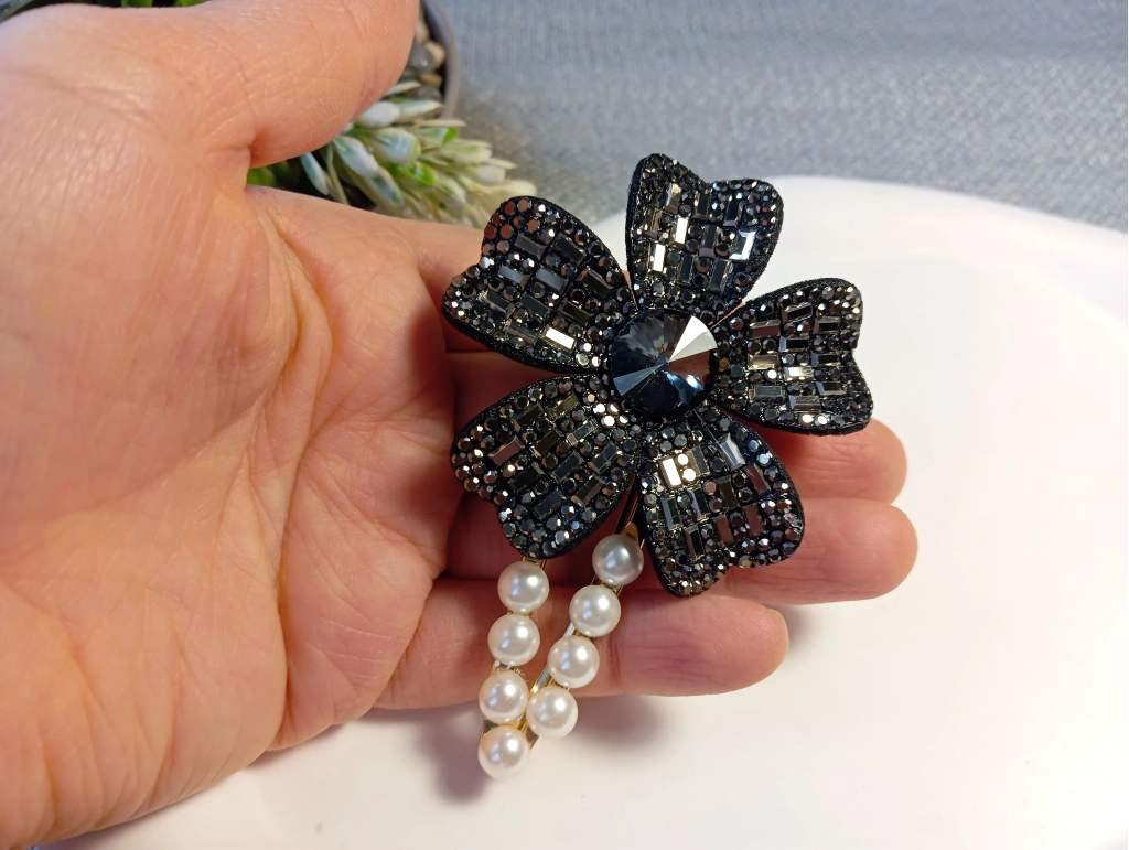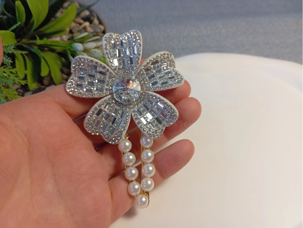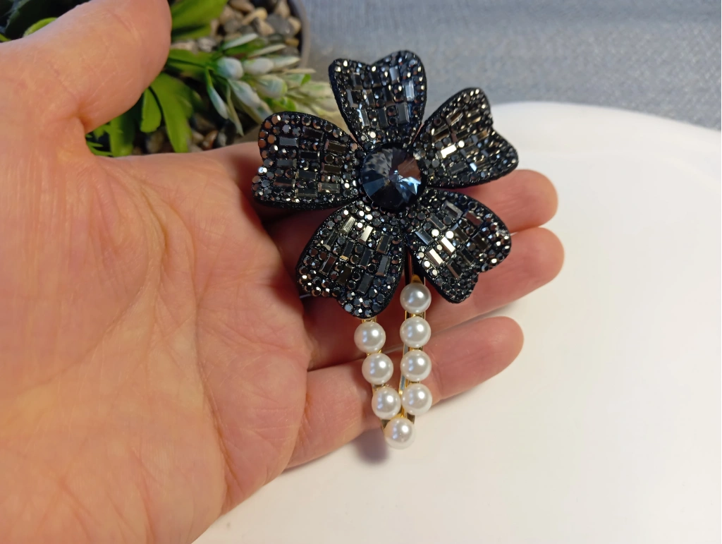 Euro Aksesuar Kristal Taşlı Çiçek Figürlü ve İncili Lüks Yan Toka
