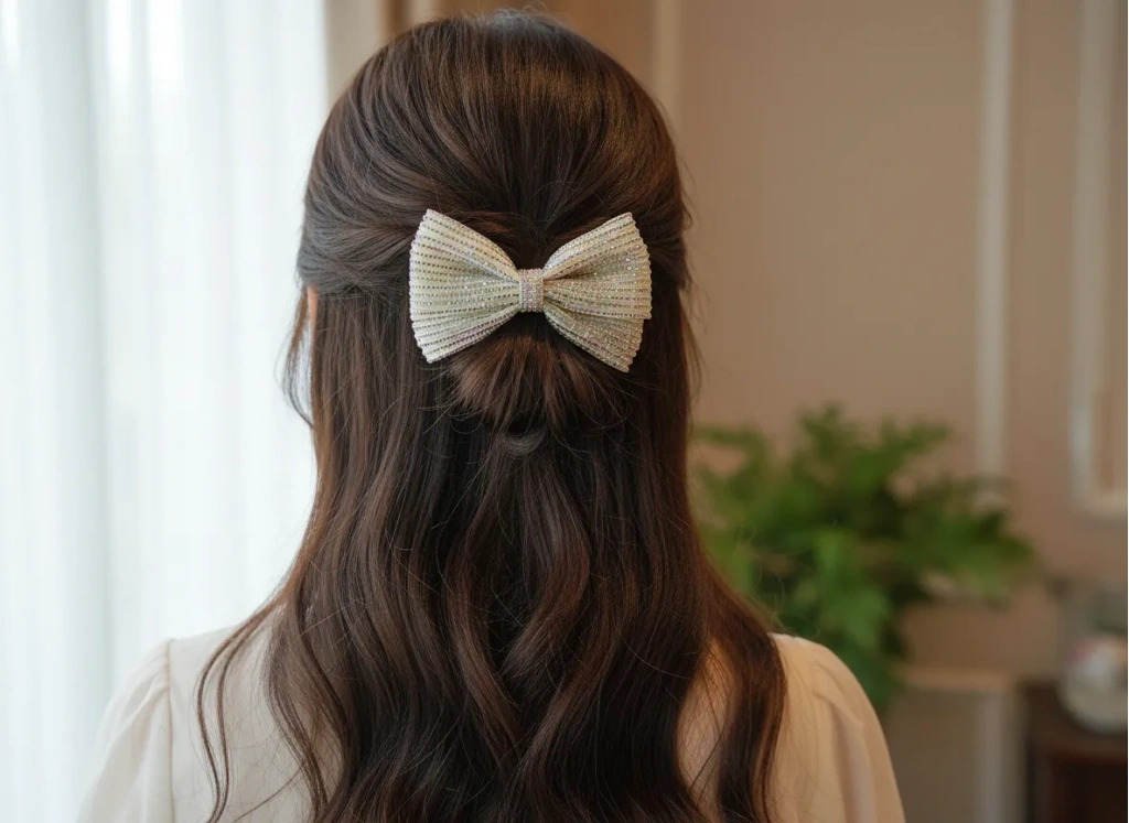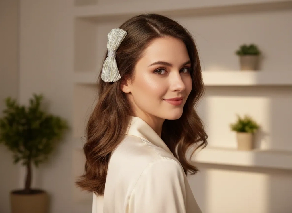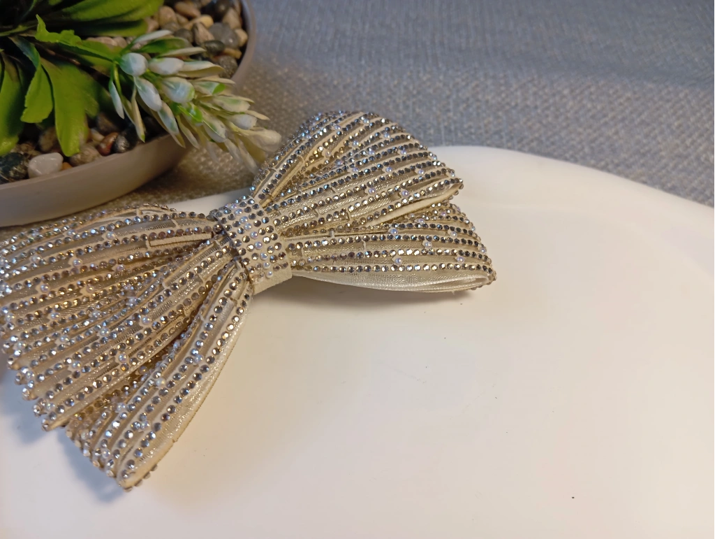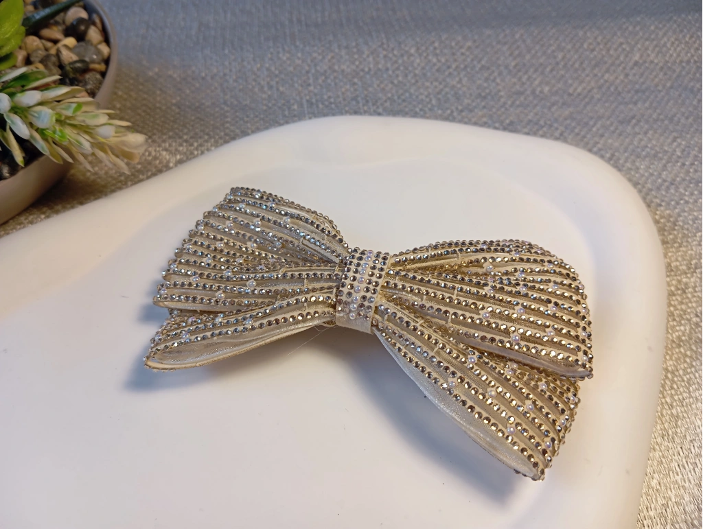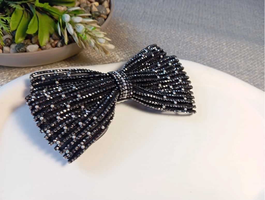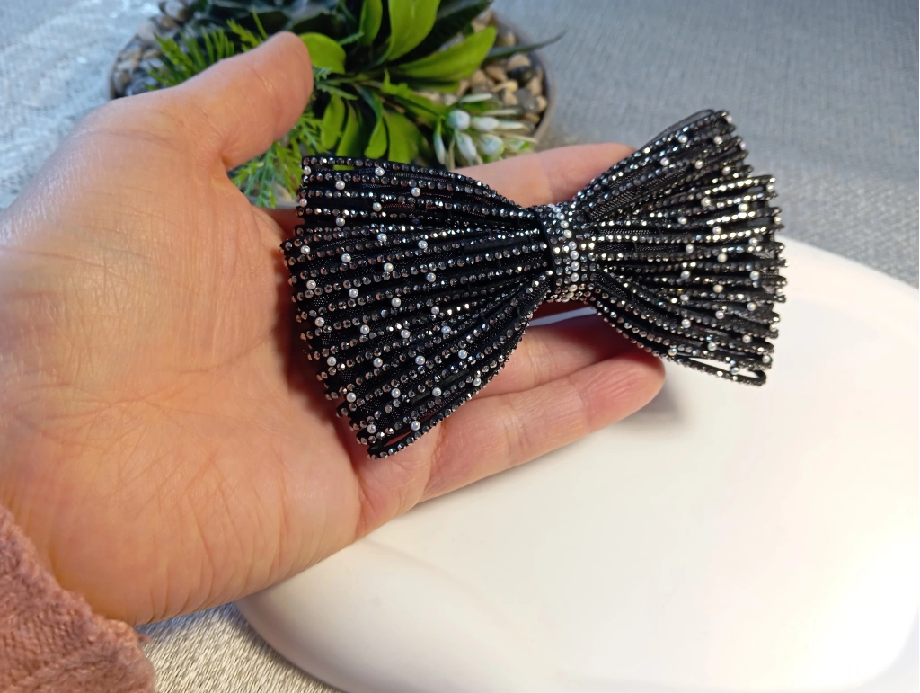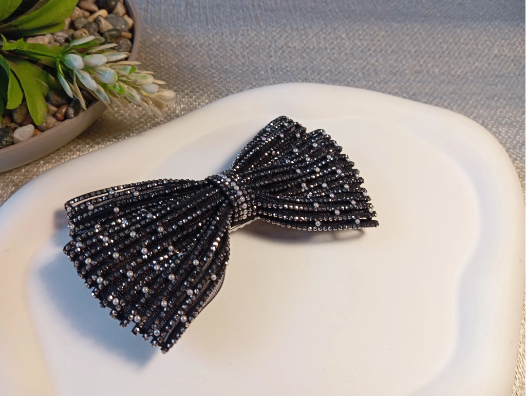 Klasik fiyonk tasarımını modern ve lüks detaylarla buluşturan bu özel toka, stilinize çarpıcı bir derinlik katıyor. Kumaş zemin üzerine titizlikle işlenmiş dikey kristal taş sıraları ve aralara serpiştirilmiş zarif inci detayları, her açıdan ışıldayan bir görünüm sağlar. Geniş formu sayesinde saçı dolgun gösteren bu aksesuar, sağlam otomatik mekanizması ile en kalın saçlarda bile güvenli ve konforlu bir tutuş sunar. Hem abiye kombinlerinizde hem de şık ofis stilinizde fark yaratacak bu parça, Euro Aksesuar kalitesiyle beğeninize sunulmuştur.