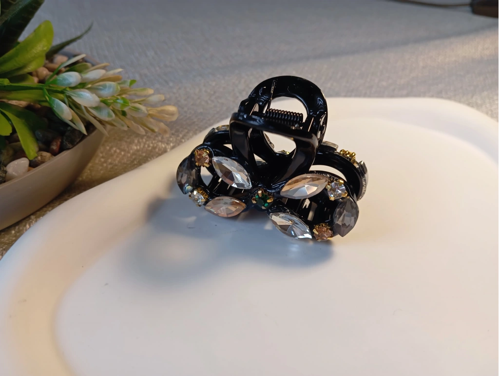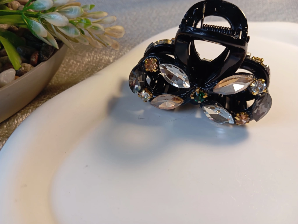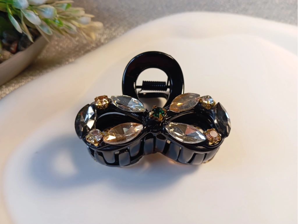 Saçlarınızda mücevher ışıltısını hissetmeye hazır mısınız? Euro Aksesuar farkıyla sunulan bu özel tasarım mandal toka, farklı formlardaki kristal taşların sanatsal birleşimiyle zarafeti yeniden tanımlıyor.