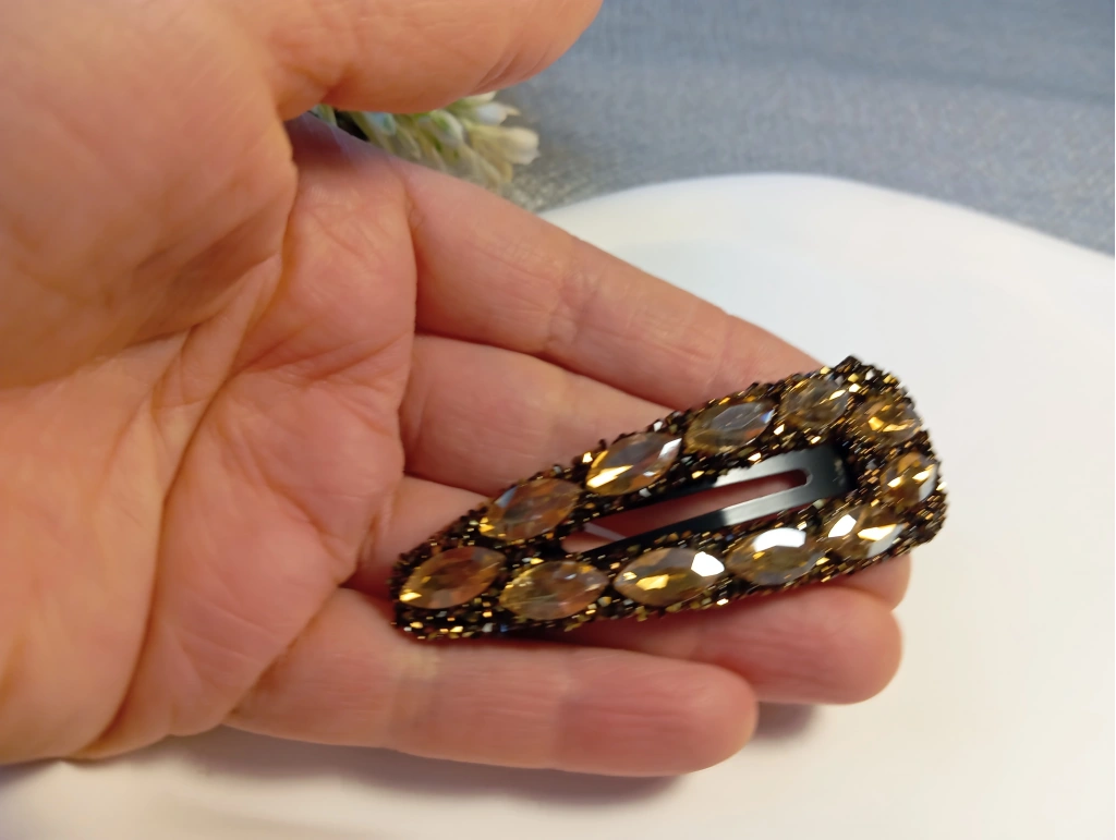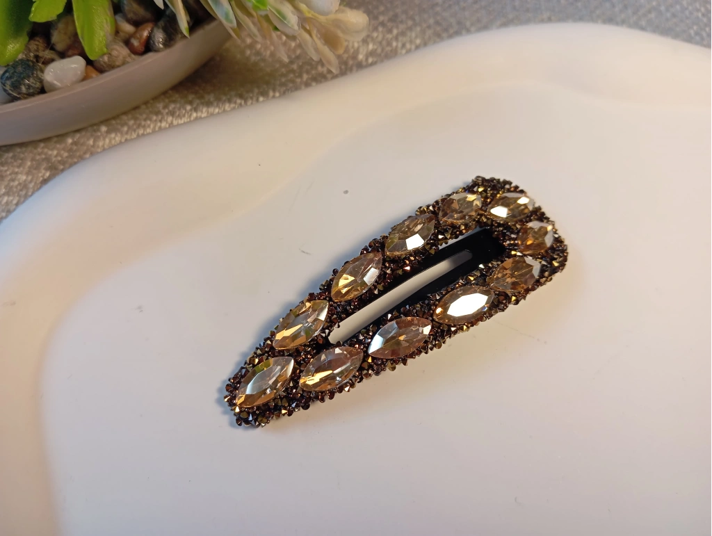 Euro Aksesuar Premium Kristal ve Markiz Taşlı Lüks Yan Toka - 7 cm Işıltılı Çıt Çıt Toka