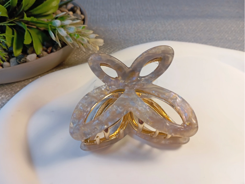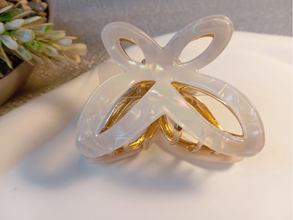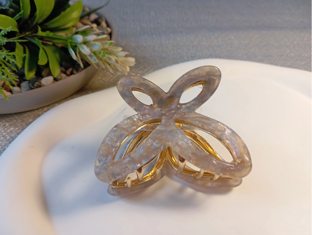 Euro Aksesuar Sedefli Krem Desenli Lüks Metal Kelebek Mandal Toka 7 cm