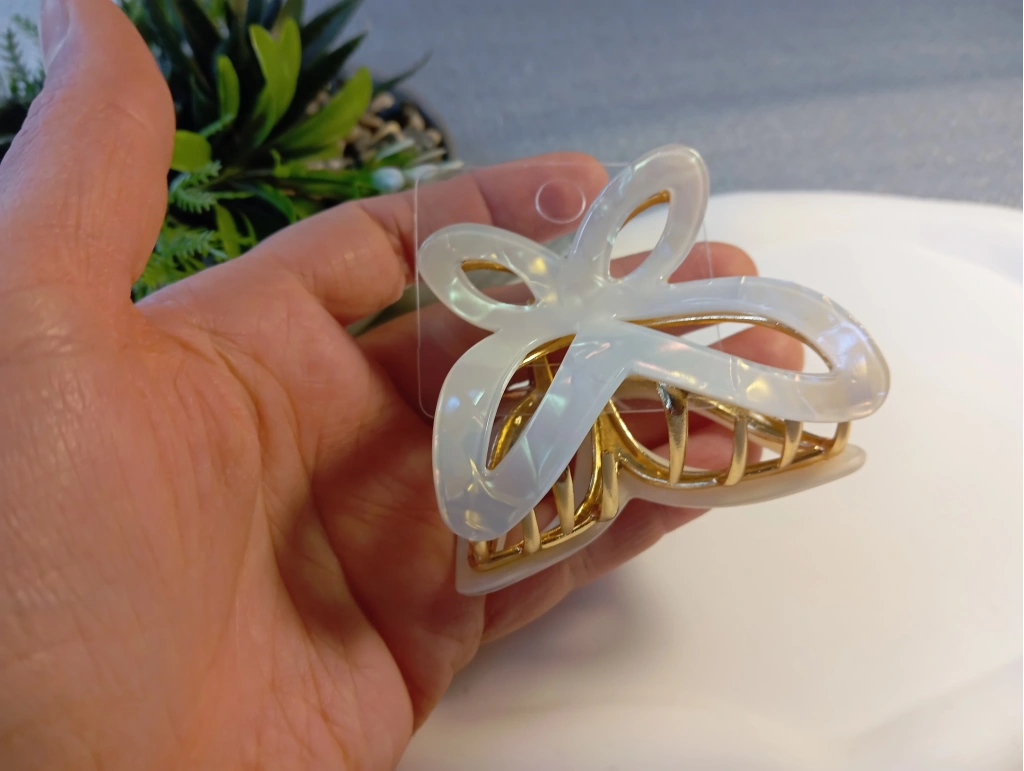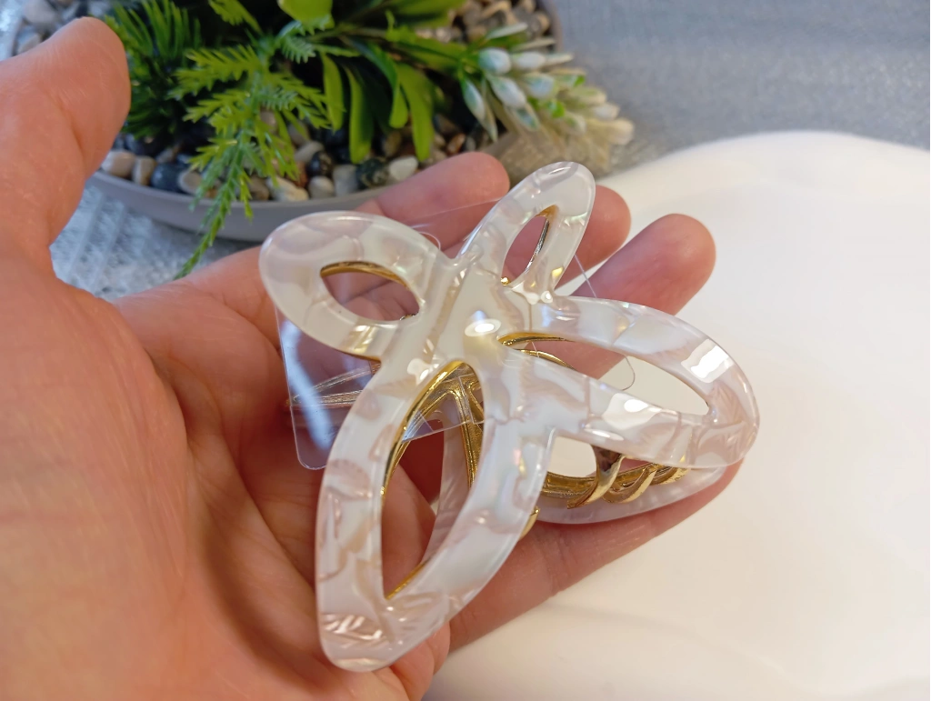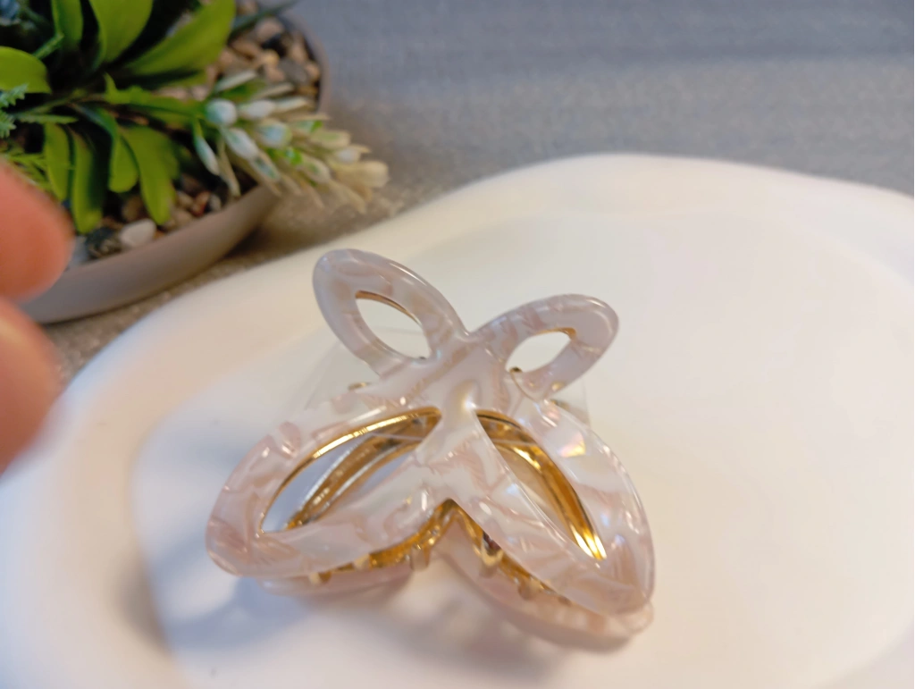 Şıklığı ve dayanıklılığı bir arada sunan bu özel tasarım mandal toka, saç stilinize zarif bir dokunuş katar. Yüksek kaliteli metal gövdesi üzerine işlenmiş sedefli krem desenleri ve modern geometrik kelebek formuyla hem günlük kullanımda hem de özel davetlerde vazgeçilmeziniz olacak. Güçlü yay mekanizması sayesinde saçı sıkıca tutar ve gün boyu formunu korur. Euro Aksesuar kalitesiyle sunulan bu aksesuar, her saç tipine uygundur.
