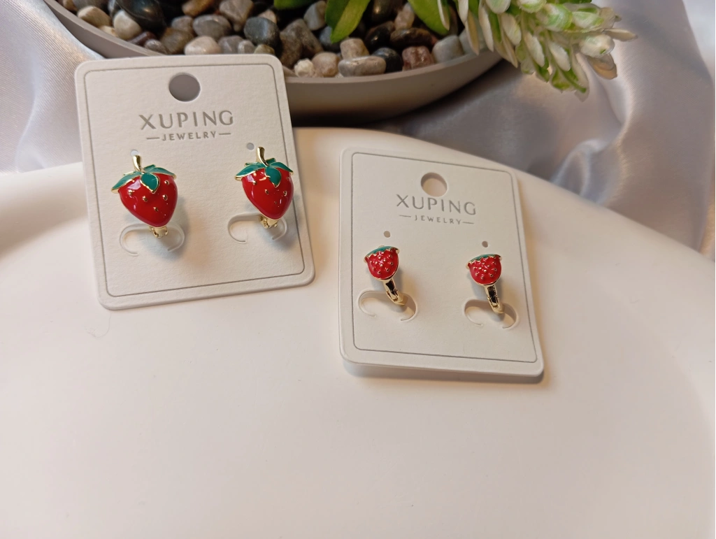 Stilinize tatlı bir dokunuş katacak olan Xuping Jewelry imzalı bu küpeler, canlı kırmızı mine işçiliği ve altın kaplama detaylarıyla göz kamaştırıyor. İster kendiniz için ister sevdikleriniz için harika bir hediye seçeneği olan bu model, iki farklı boy seçeneğiyle her yaşa hitap ediyor.