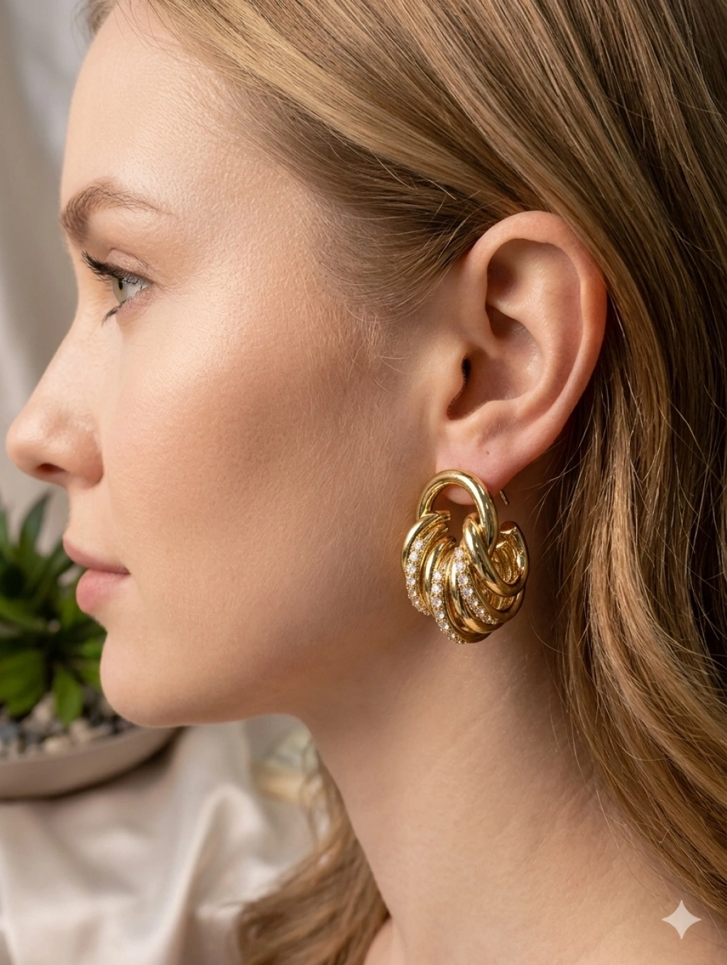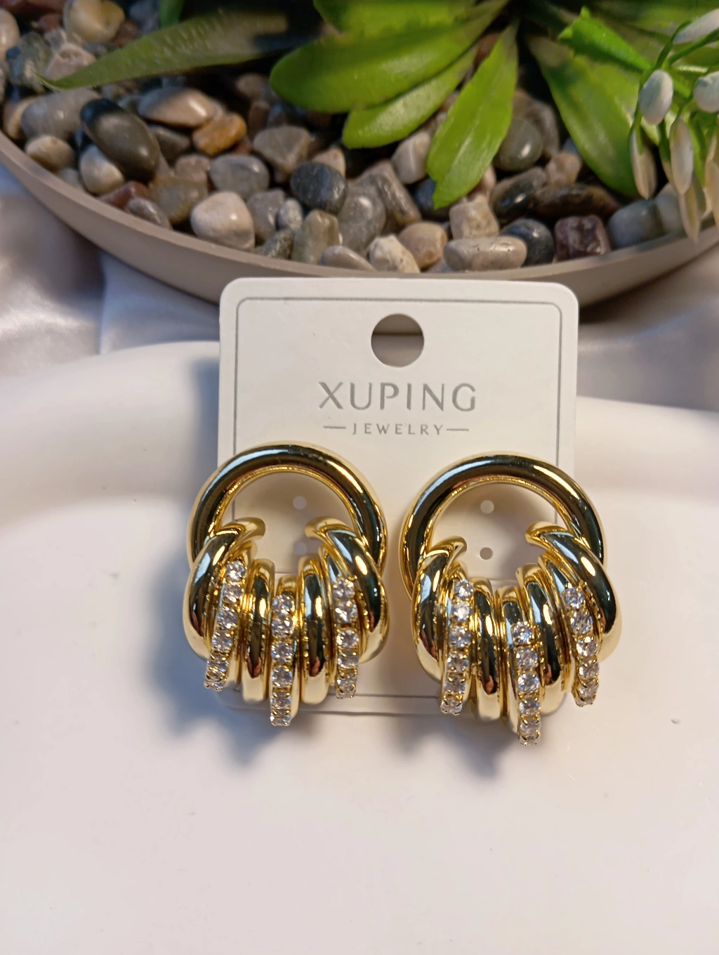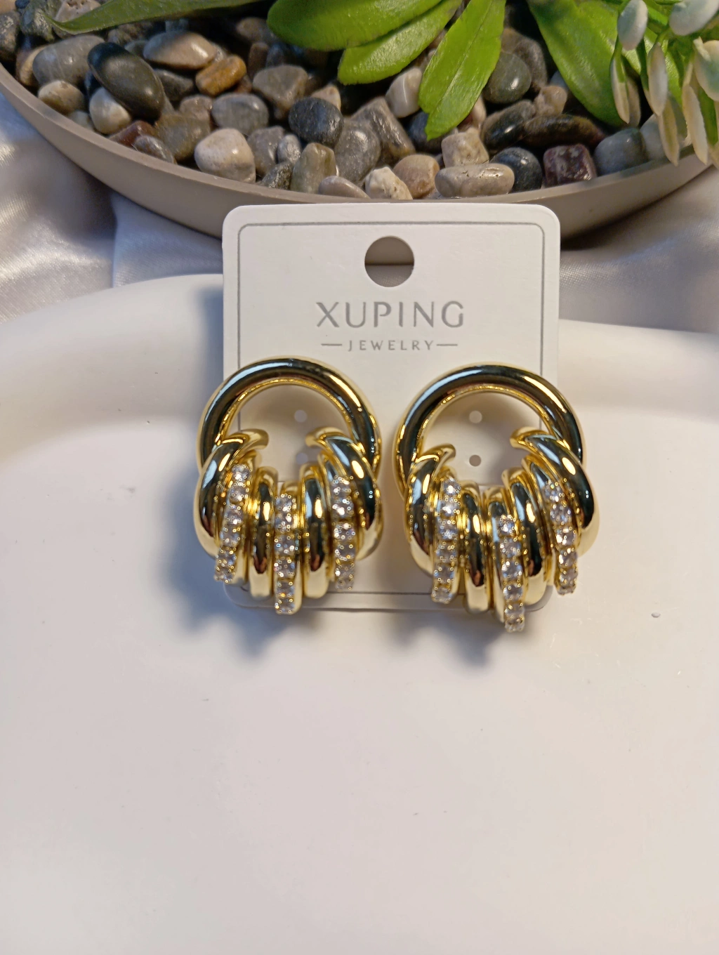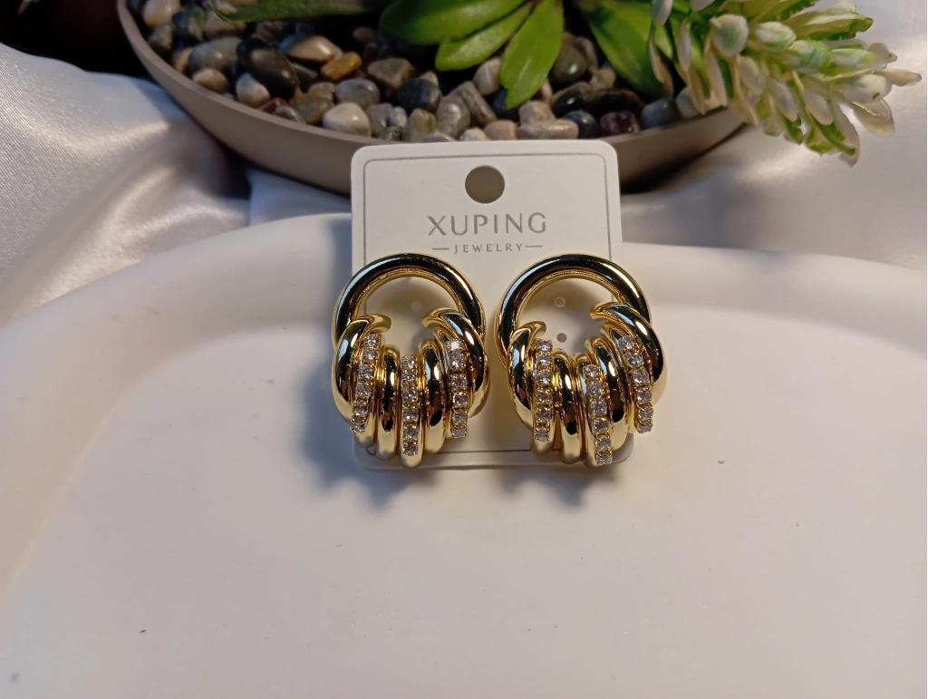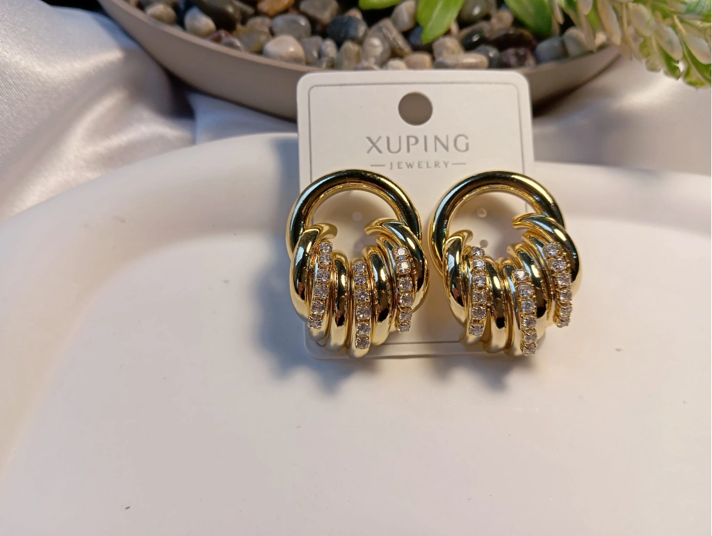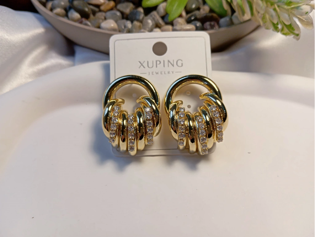 Zarafeti ve kaliteyi bir araya getiren Xuping Jewelry koleksiyonumuzun en gözde parçalarından biri! 3 cm boyutundaki bu özel küpe, iç içe geçmiş burgu halka tasarımı ve üzerindeki yüksek kaliteli zirkon taş işlemeleriyle göz kamaştırıcı bir ışıltı sunar.