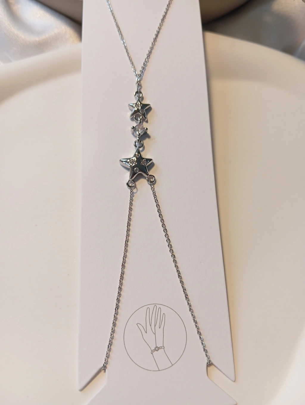 Euro Aksesuar'ın "Luxury Jewelry" koleksiyonundan çıkan bu özel tasarım şahmeran, zarafeti ve gökyüzünün büyüsünü bir araya getiriyor. İnce zincir detayları ve özenle yerleştirilmiş zirkon taşlı yıldız figürleri ile stilinize sofistike bir dokunuş katın.