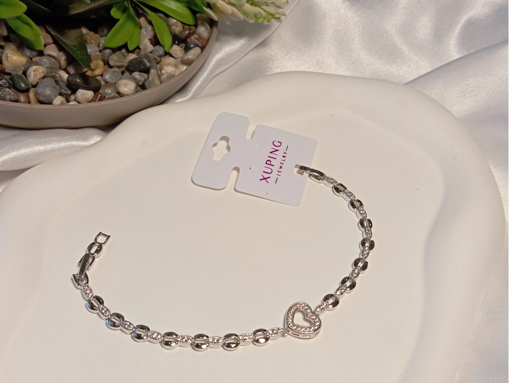 Zarafeti ve romantizmi tek bir tasarımda buluşturan bu Xuping Jewelry VIP seri bileklik, kalbinizin ışıltısını bileğinize taşıyor. Euro Aksesuar kalitesiyle sunulan bu özel parça, ince işçiliği ve zamansız kalp figürüyle stilinize naif bir değer katıyor.