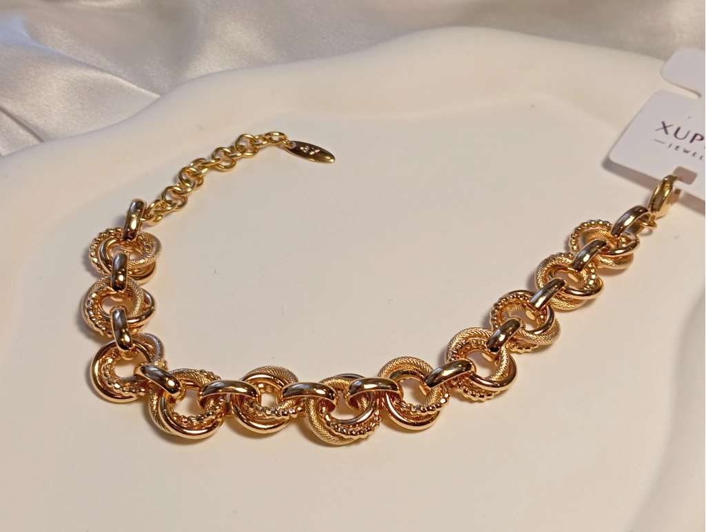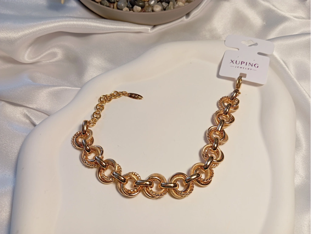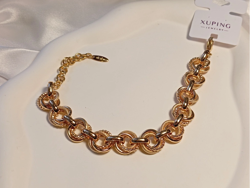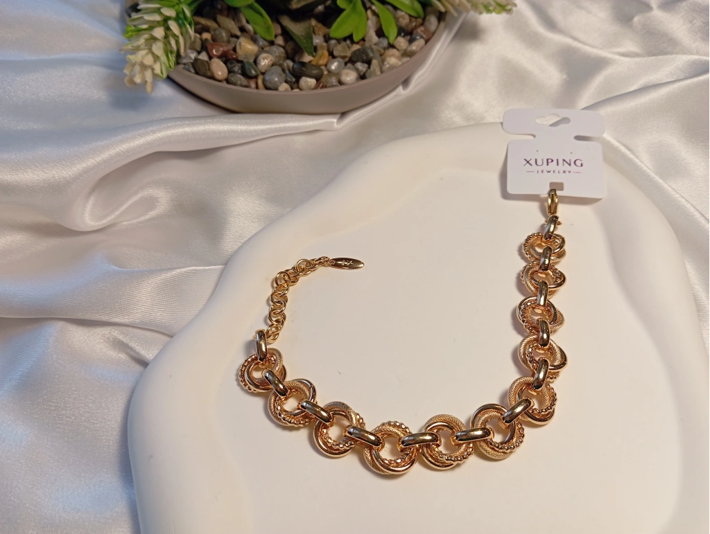 Modern tasarımı ve anlamlı duruşuyla bileğinizdeki en zarif detay olmaya aday! Euro Aksesuar güvencesiyle sunulan bu Xuping Jewelry bileklik, iç içe geçmiş halka figürleriyle sonsuz bağı ve uyumu simgeliyor.