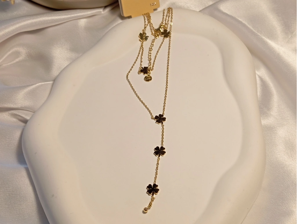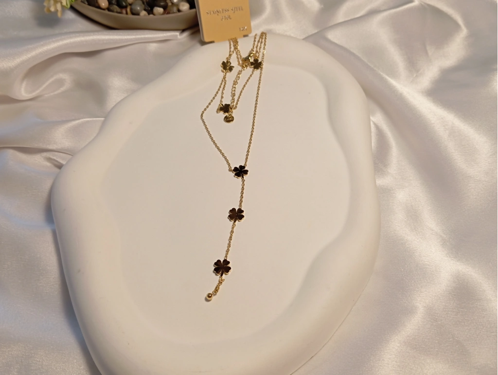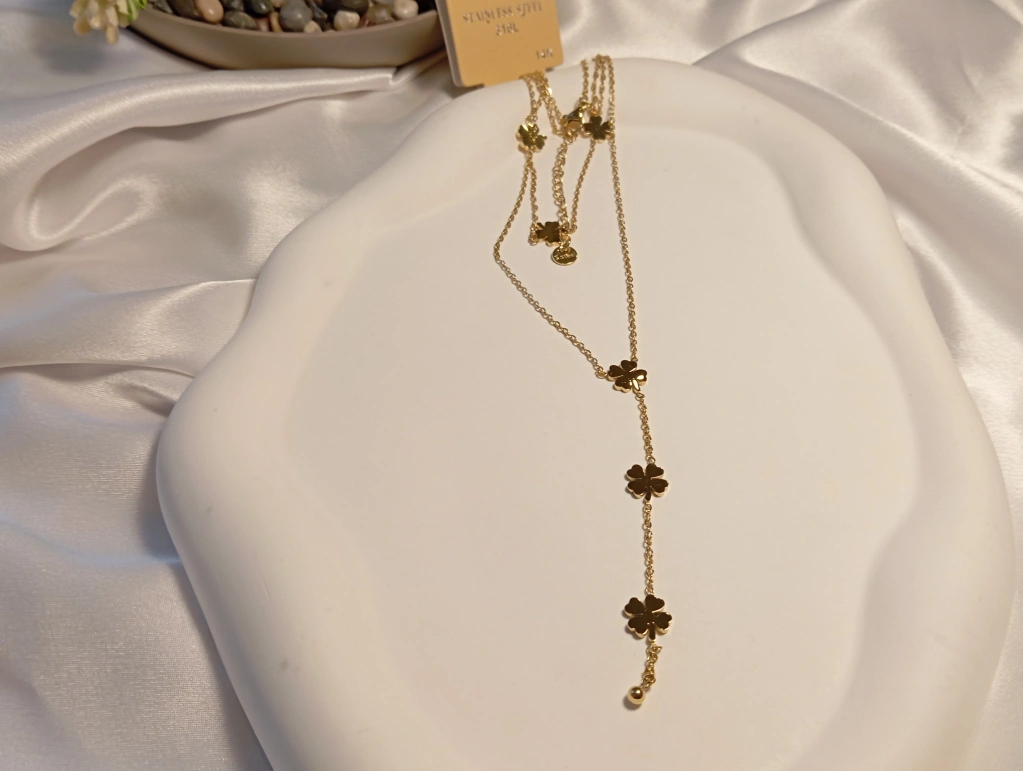 Zarif Bir Şans Dokunuşu: Minimal Yonca Detaylı Çelik Y Kolye