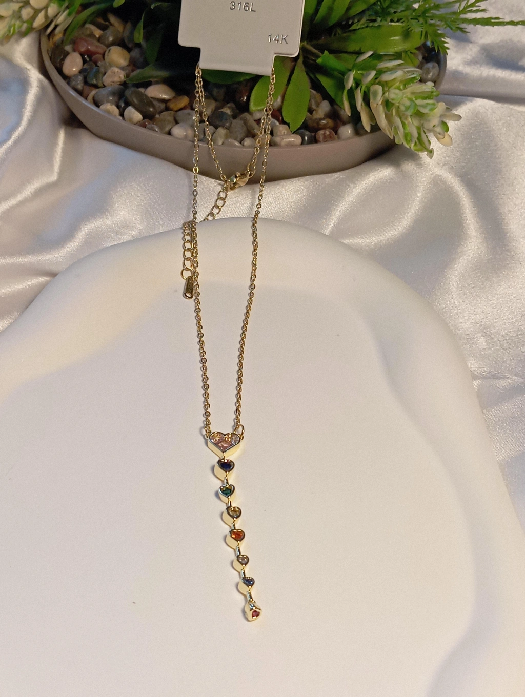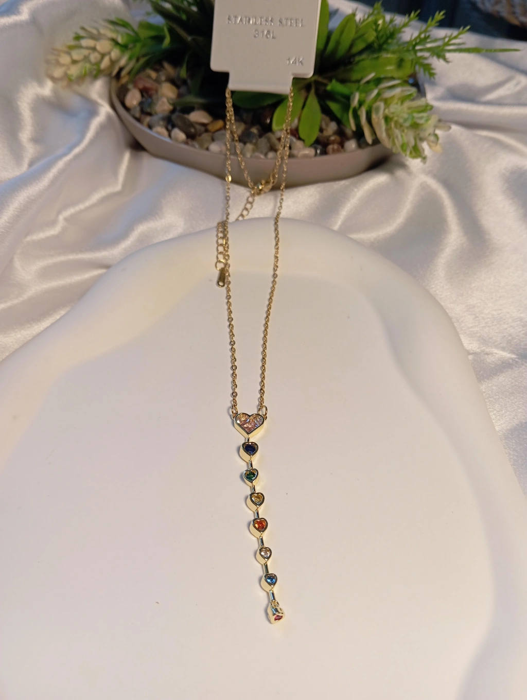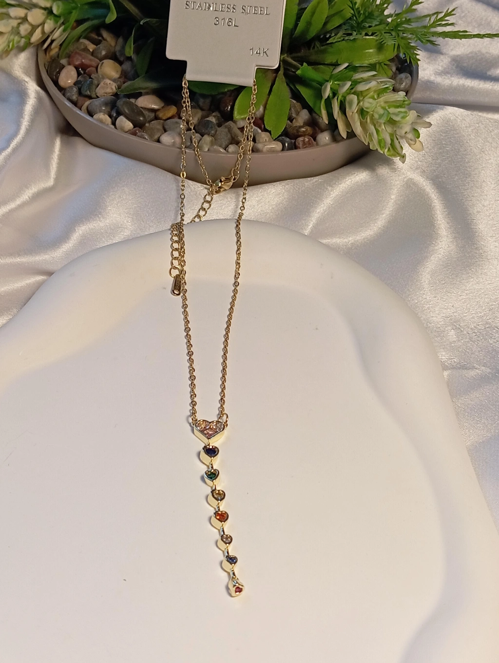 Renkli Zirkon Taş Detaylı Element Çelik Kolye
