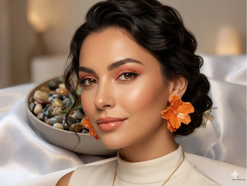 Stilinize canlılık ve enerji katmaya hazır mısınız? Bu çarpıcı çiçek tasarım küpe, kıvrımlı yaprak detayları ve canlı turuncu emaye kaplamasıyla doğanın tüm neşesini kulaklarınıza taşıyor. "Statement" aksesuar sevenler için özel olarak tasarlanan bu model, en sade kombinleri bile bir anda podyum şıklığına kavuşturacak kadar iddialı bir parçadır.