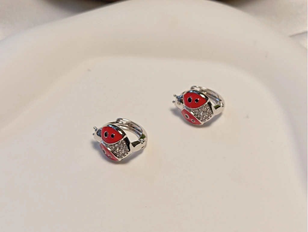 1 cm boyutundaki ideal ölçüsüyle kulakta zarif ve hafif bir duruş sergiler. Canlı kırmızı mine işçiliği ve altın kaplama detaylarıyla birleşen uğur böceği figürü, çocukların günlük kombinlerine sevimli bir dokunuş yapar.