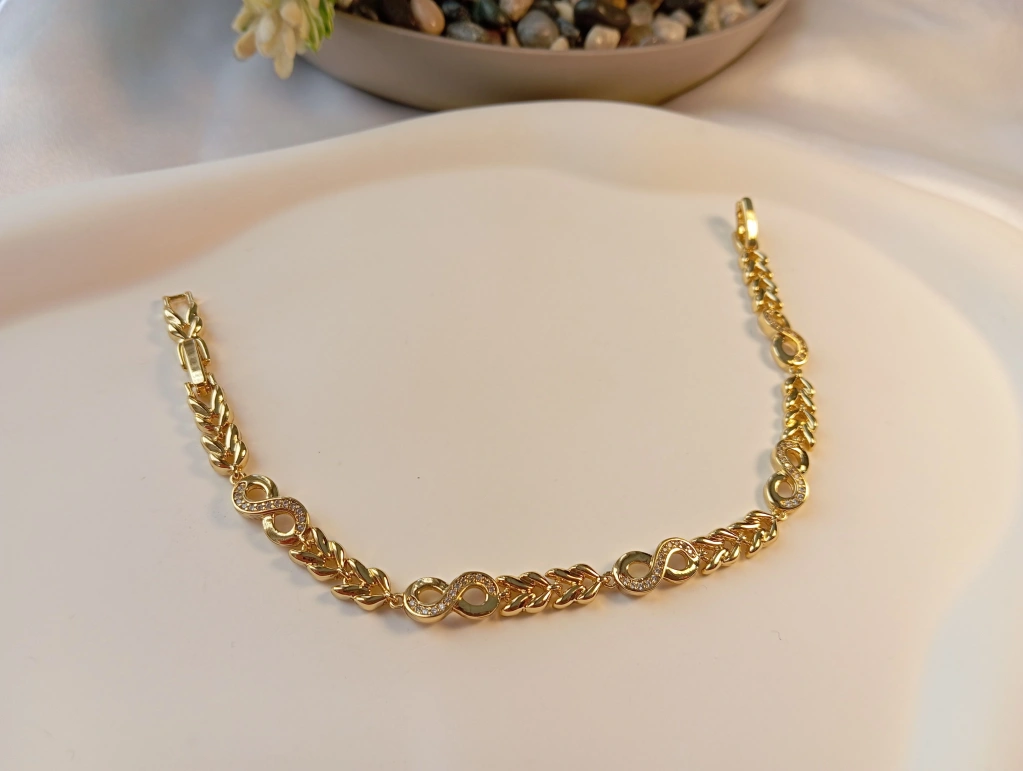 Xuping 14 Ayar Altın Kaplama Zirkon Taşlı Sonsuzluk Figürlü Zarif Bileklik (17-19 cm)