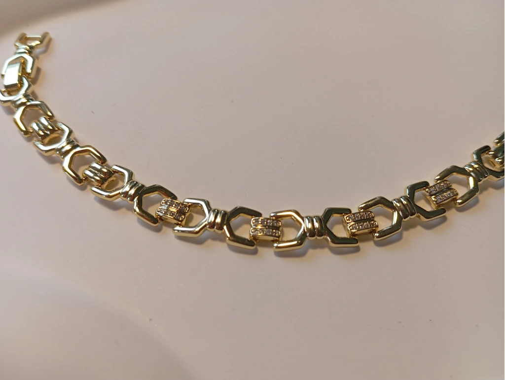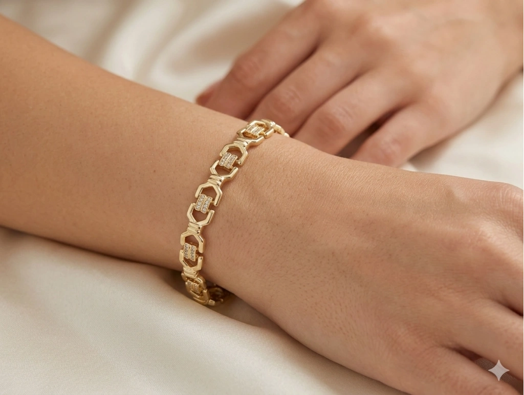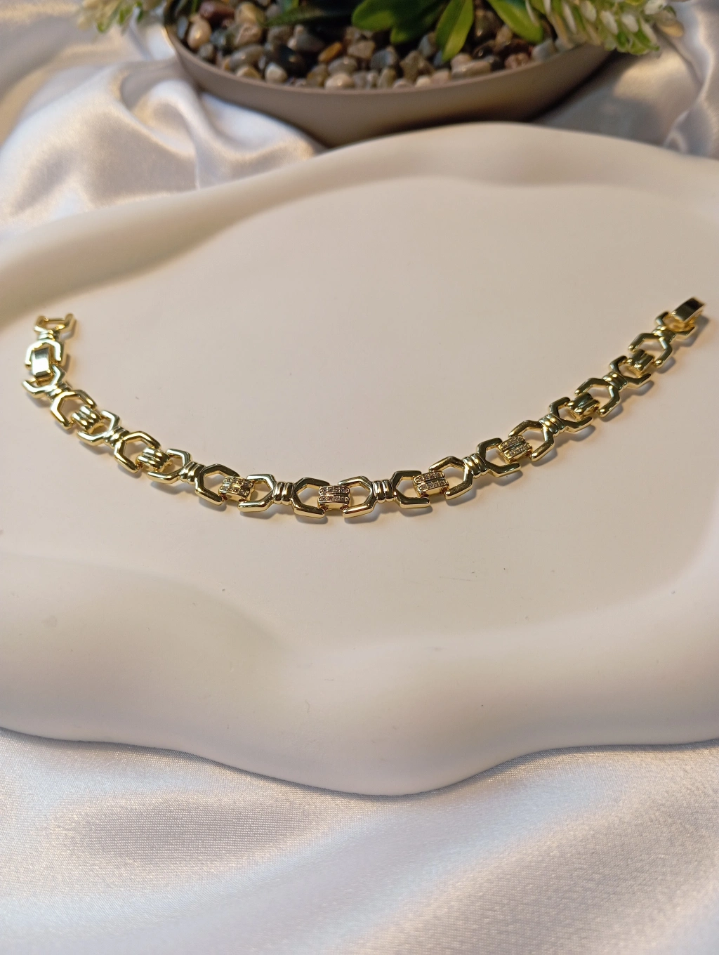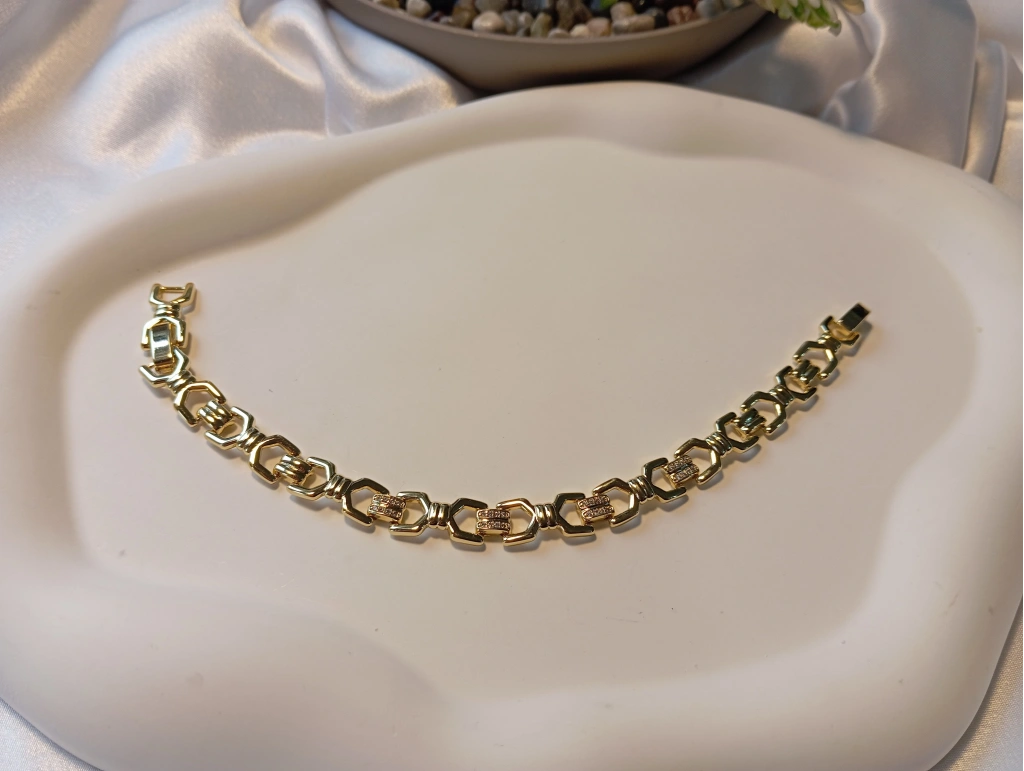 Euro Aksesuar'ın özel koleksiyonundan seçilen bu zarif Xuping bileklik, 14 ayar altın kaplama ile üretilmiştir. Bileklik, hem günlük kullanıma hem de özel davetlere şıklık katmak için tasarlanmıştır. Geometrik ve modern desenleri, hassas bir şekilde yerleştirilmiş ışıltılı zirkon taşlarla bir araya gelerek göz alıcı bir parlaklık sunar. Bileklik, 16,5 cm ile 17,5 cm arasında ayarlanabilir yapısı sayesinde farklı bilek ölçülerine mükemmel uyum sağlar. Xuping Jewelry markasının bilinen kalitesi ve antialerjik yapısı ile ten dostudur. Hem kendiniz için şık bir tercih hem de sevdikleriniz için unutulmaz bir hediye seçeneğidir.