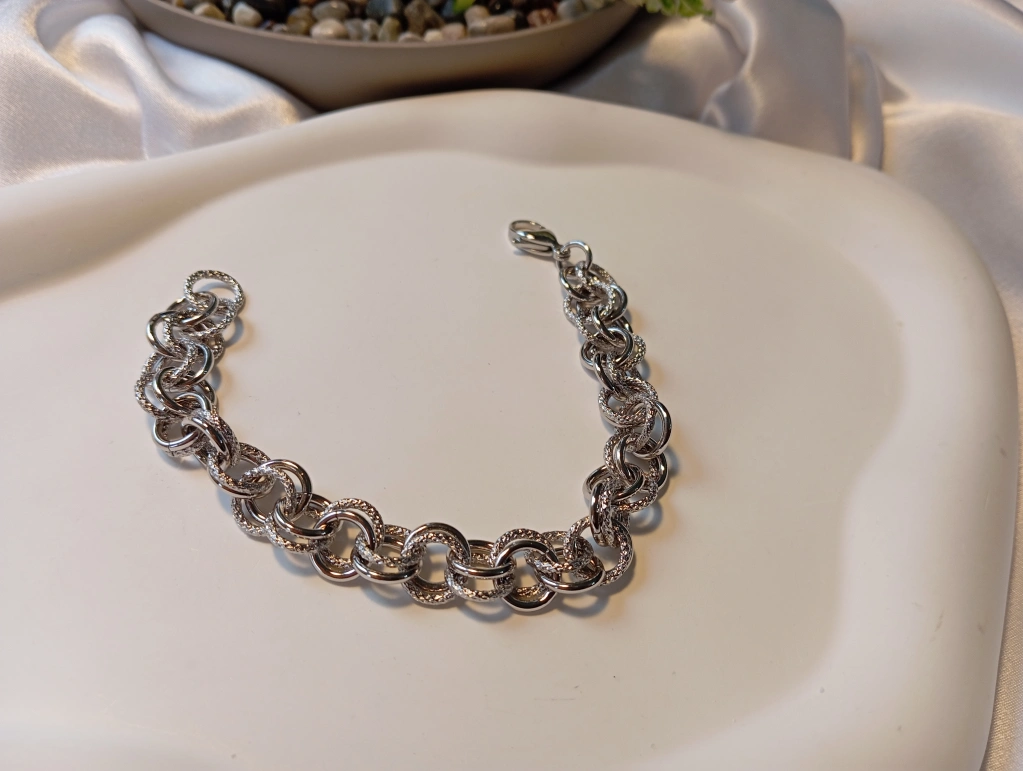 Xuping 19cm Gümüş Kaplama Özel Dokulu Halka Bileklik - Euro Aksesuar