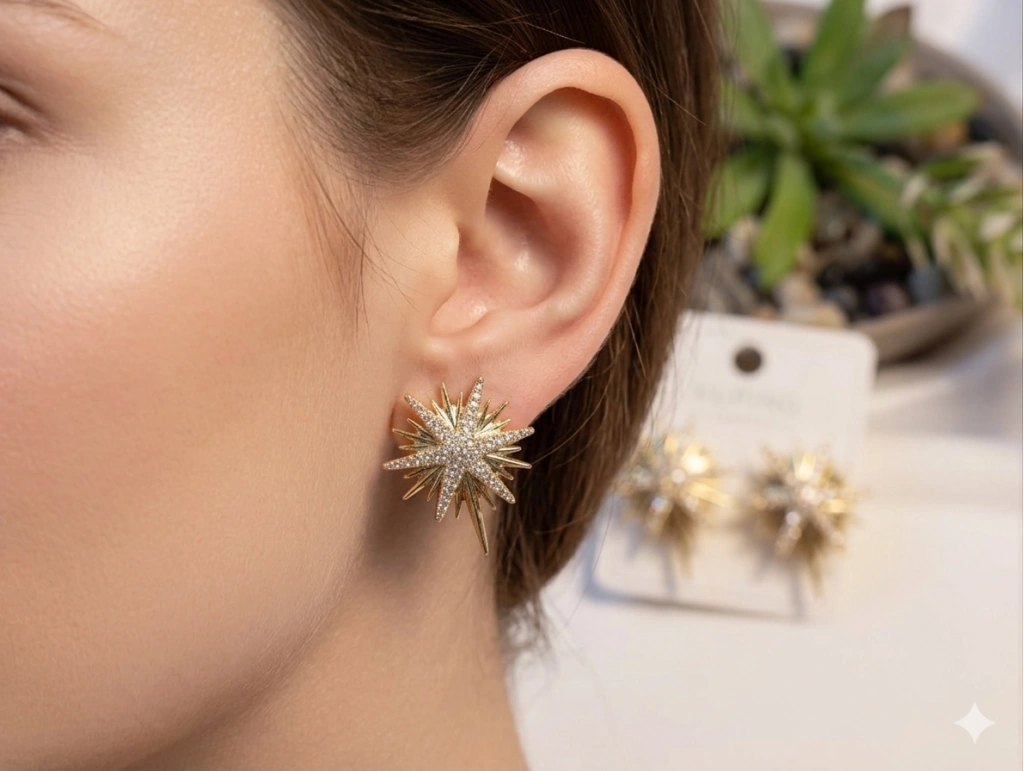 Özgün Tasarım: Kutup Yıldızı figüründen ilham alan bu küpeler, her biri titizlikle yerleştirilmiş yüksek kaliteli zirkon taşlarla bezenmiştir. Işığı mükemmel bir şekilde yansıtarak günün her anında parlamanızı sağlar.