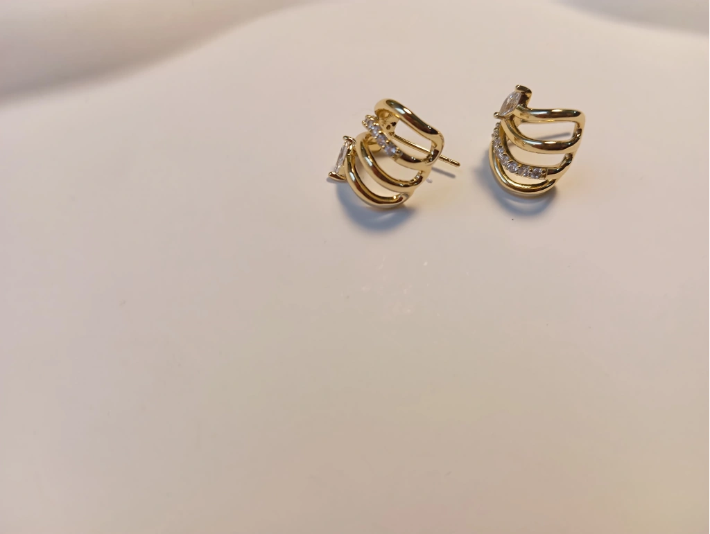 Xuping Jewelry 14 Ayar Altın Kaplama 1.5 cm Çoklu Hatlı Modern Halka Küpe