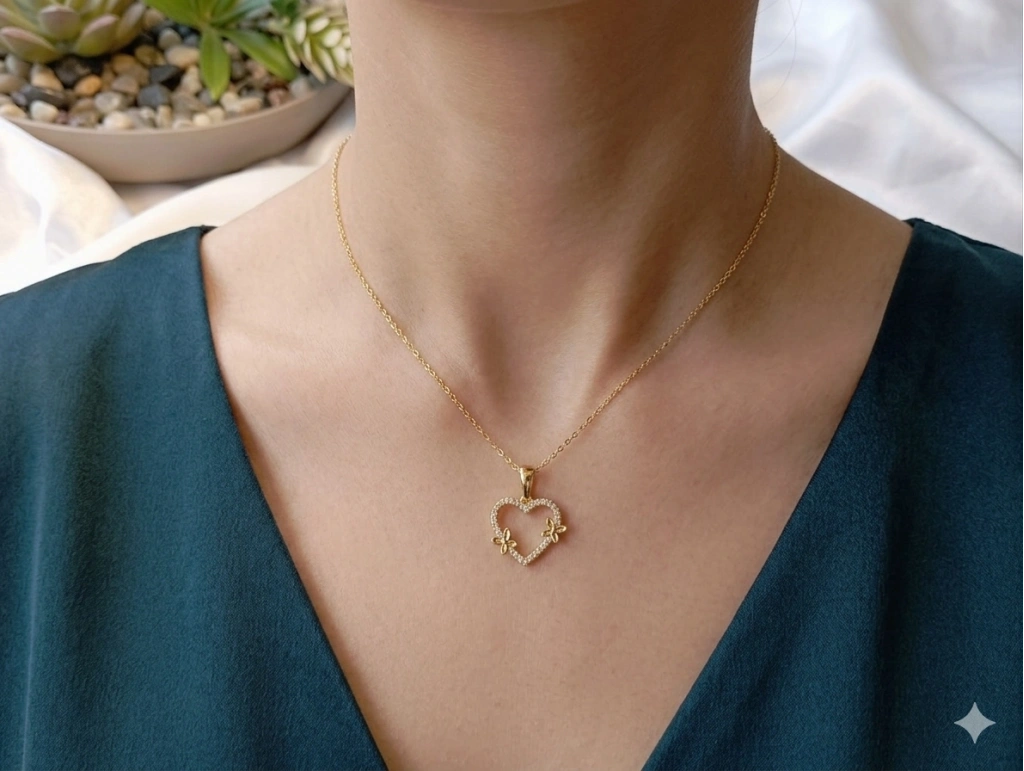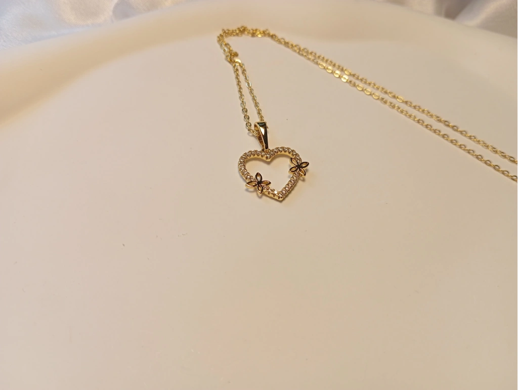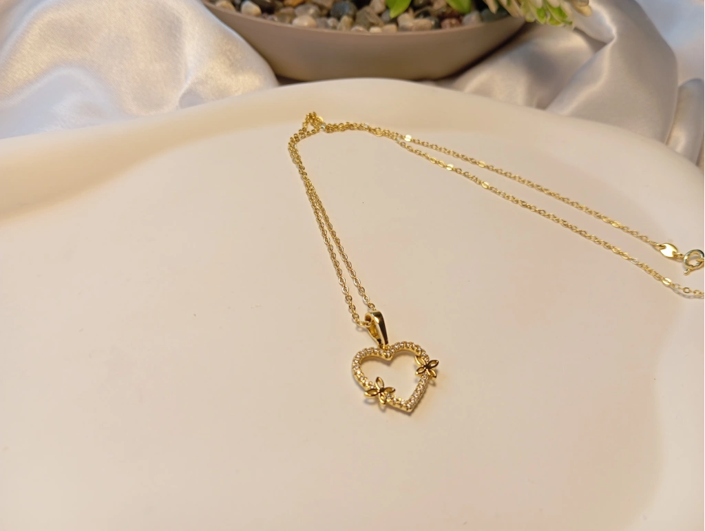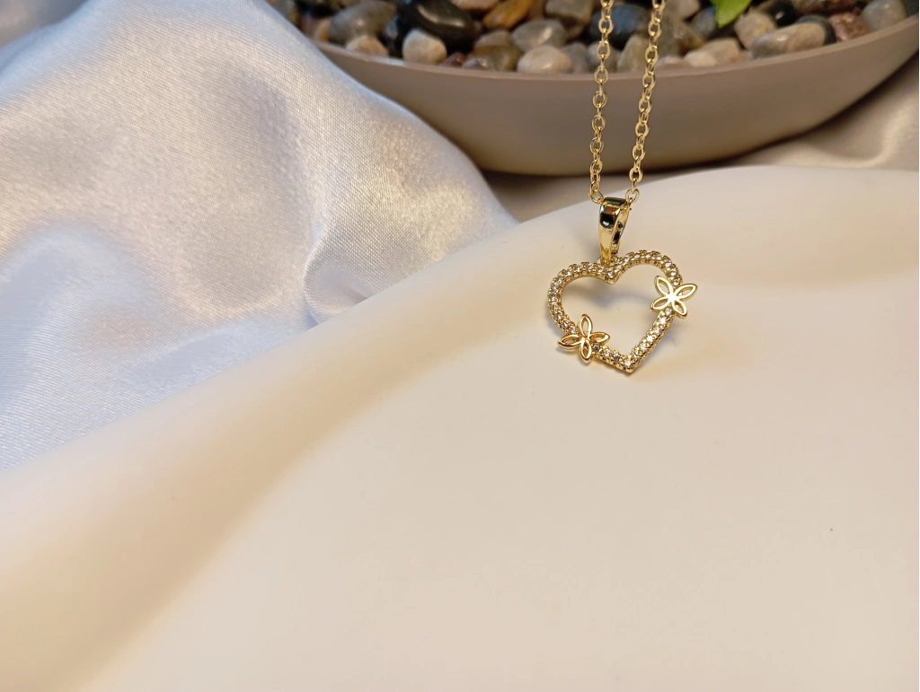 Tasarım: Zirkon taş işlemeli içi boş kalp ve üzerinde yer alan iki adet zarif kelebek detayı.