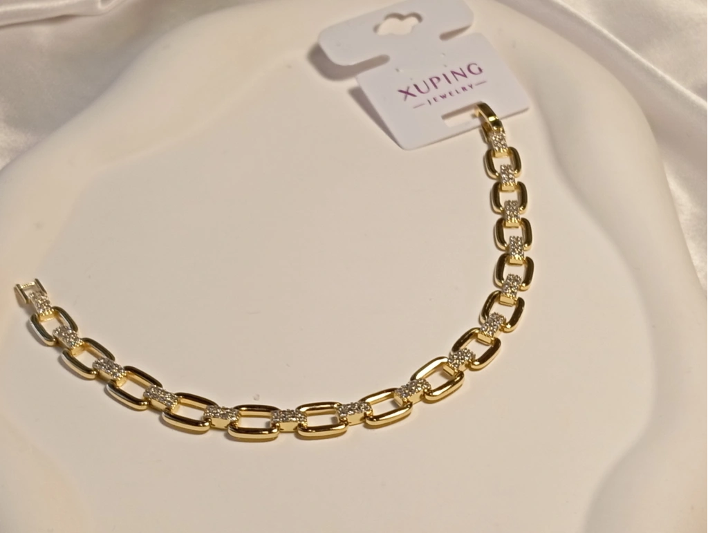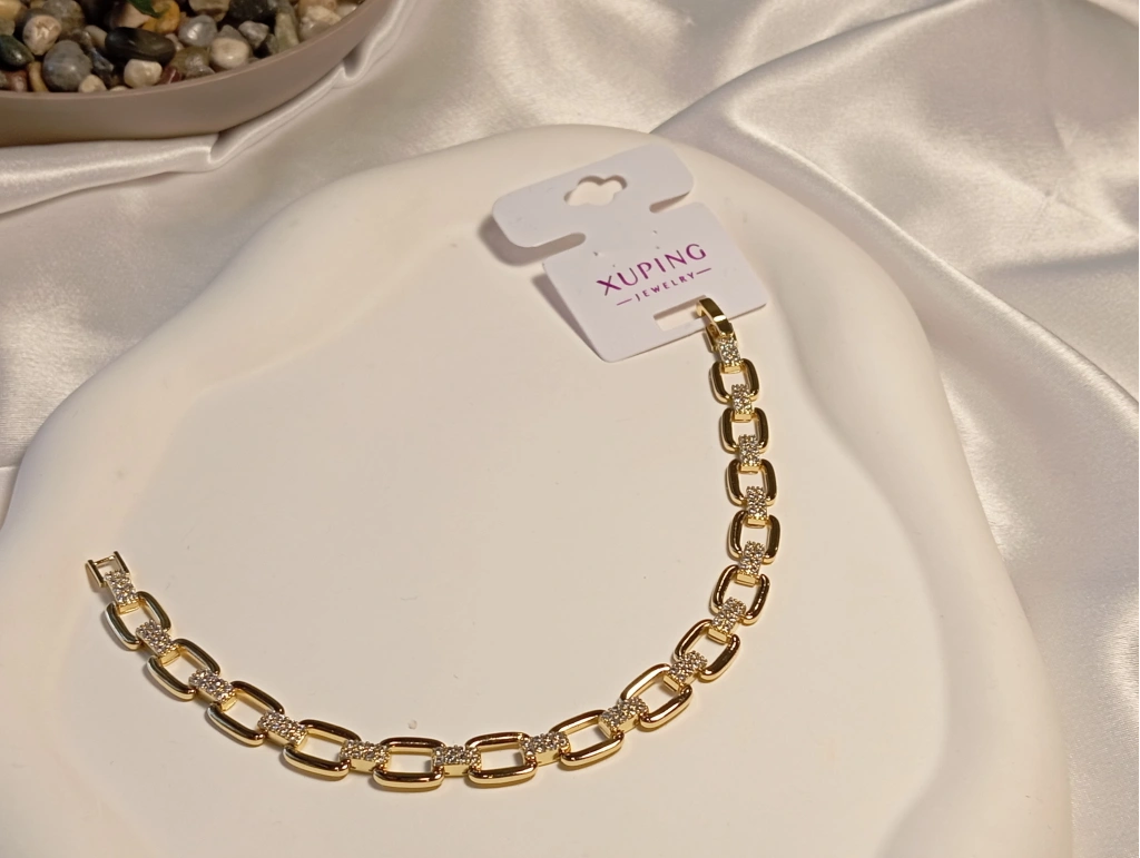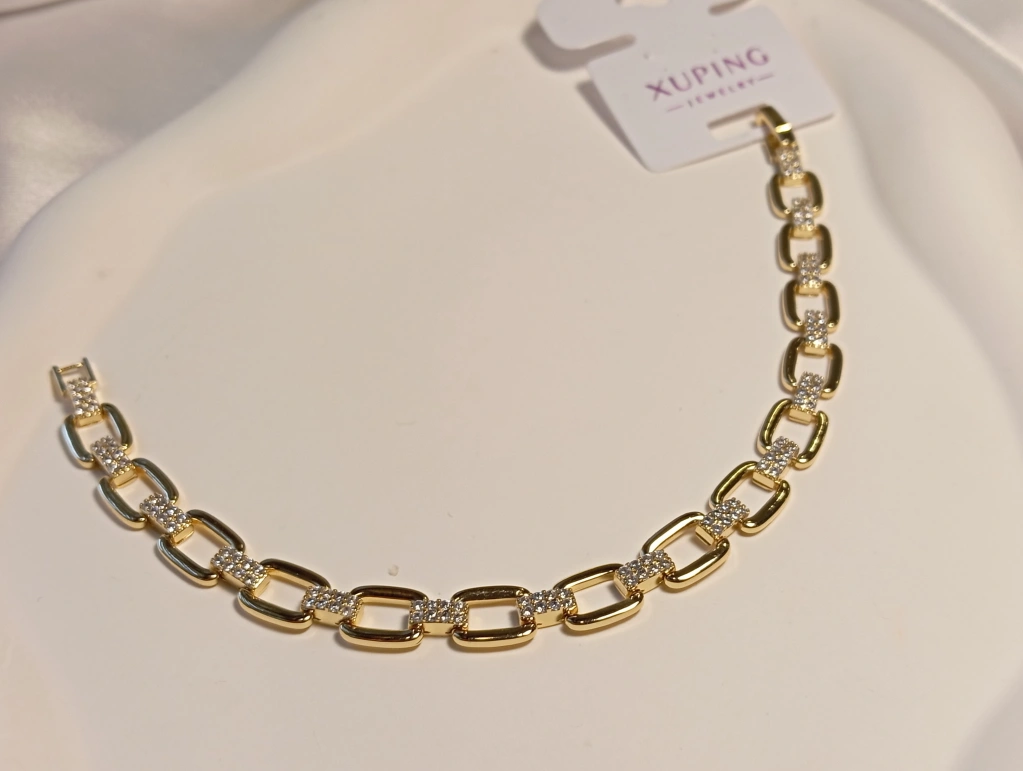 Xuping Jewelry 14 K Kaplama Dikdörtgen Şekilli Zirkon Taşlı Vip Bileklik