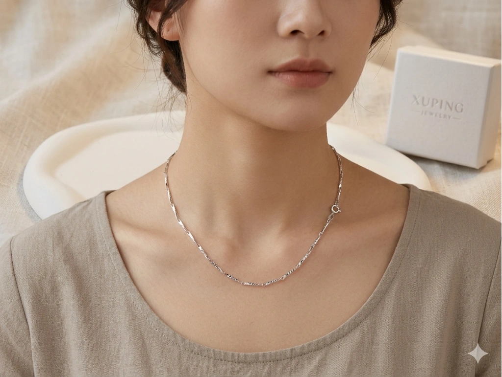 Xuping Jewelry 45 cm Gümüş Kaplama Fantezi Zincir Kolye - Euro Aksesuar