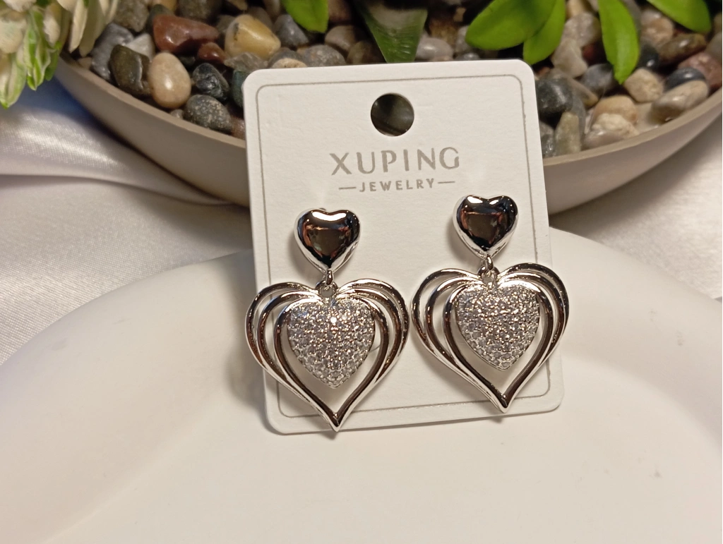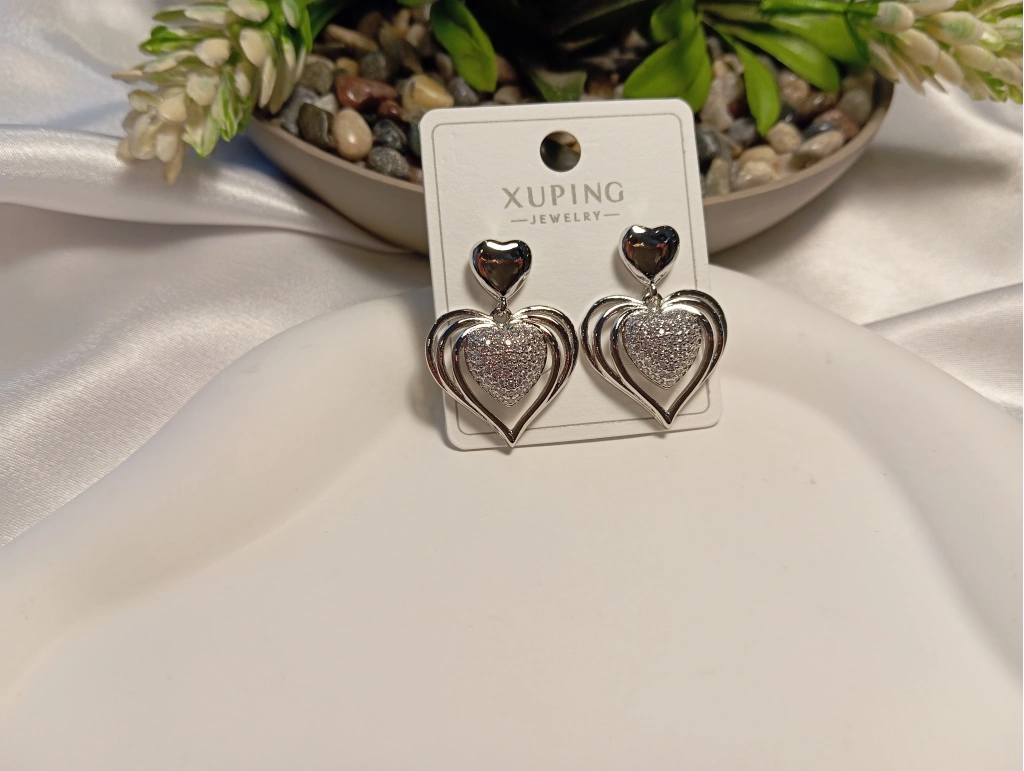 Aşkın ve zarafetin sembolü olan bu Xuping Jewelry küpe, göz alıcı kalp detaylarıyla stilinize romantik bir ışıltı katıyor. Gümüş renk kaplaması ve yoğun zirkon taş işlemesiyle pırlanta şıklığını günlük hayatınıza taşıyan bu model, katmanlı kalp tasarımıyla derinlik ve modern bir hava sunar.