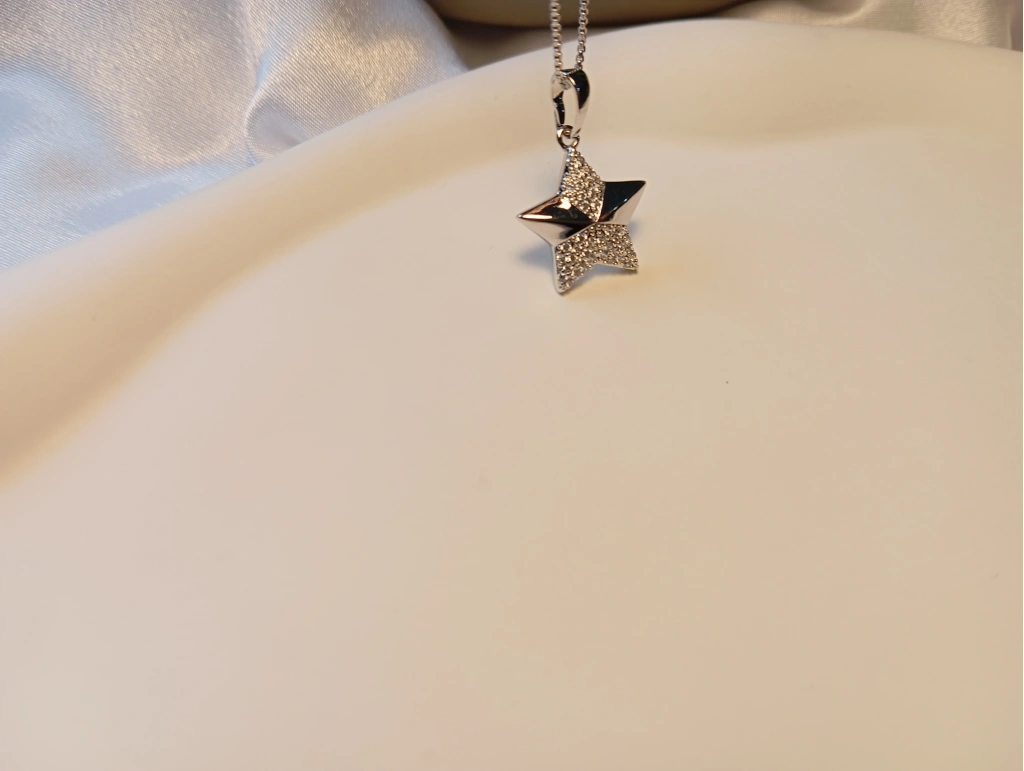 Tasarım: Bir tarafı parlak sade metal, diğer tarafı zirkon taş işlemeli modern yıldız figürü.