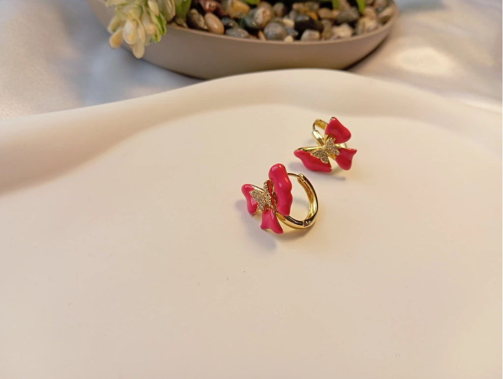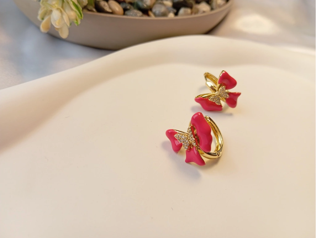 Zarafetin ve doğanın sembolü olan kelebek figürü, Xuping Jewelry kalitesiyle yeniden yorumlandı. İnce işçilikle hazırlanan bu halka geçişli kelebek küpeler, canlı mine renkleri ve merkezindeki ışıltılı zirkon taşlarıyla günün her anında stilinize eşsiz bir dokunuş katacak.
