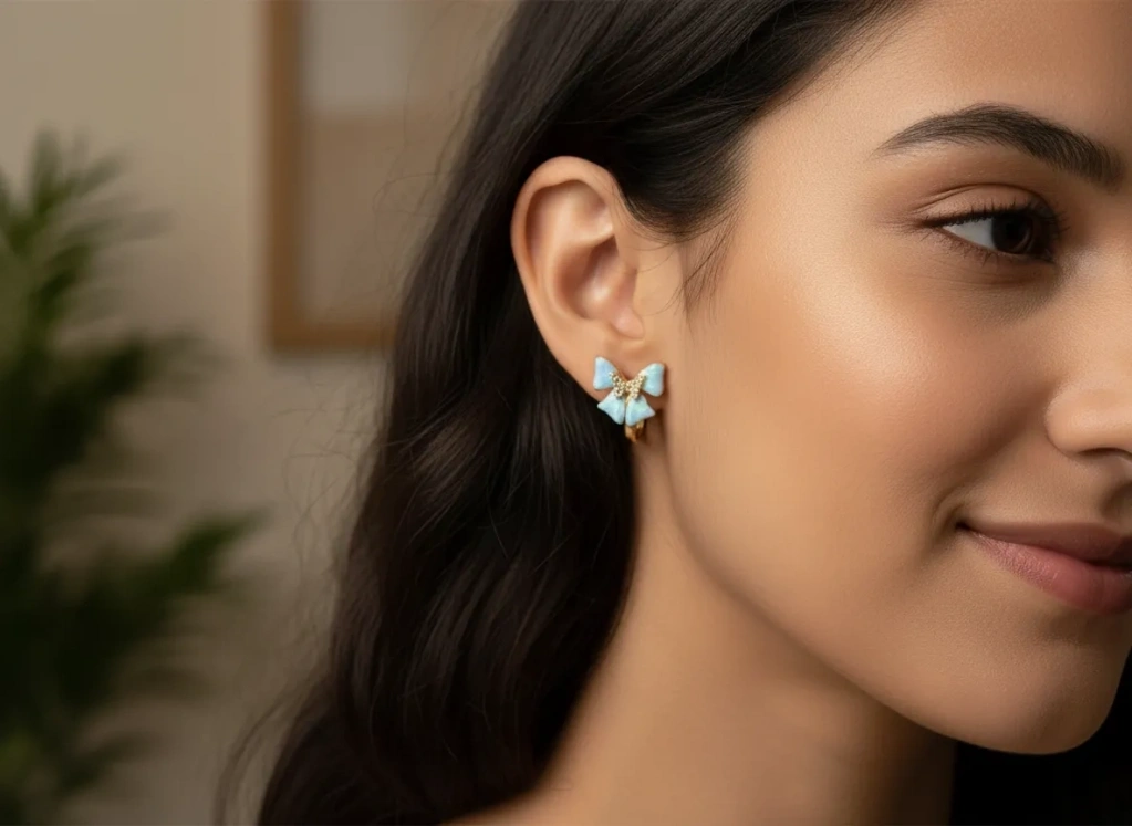 Xuping Jewelry Zirkon Taşlı ve Mineli Minimal Kelebek Küpe (1,5 cm)