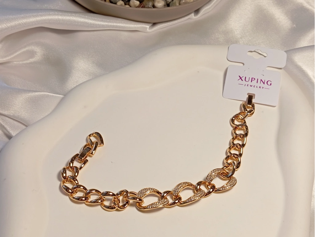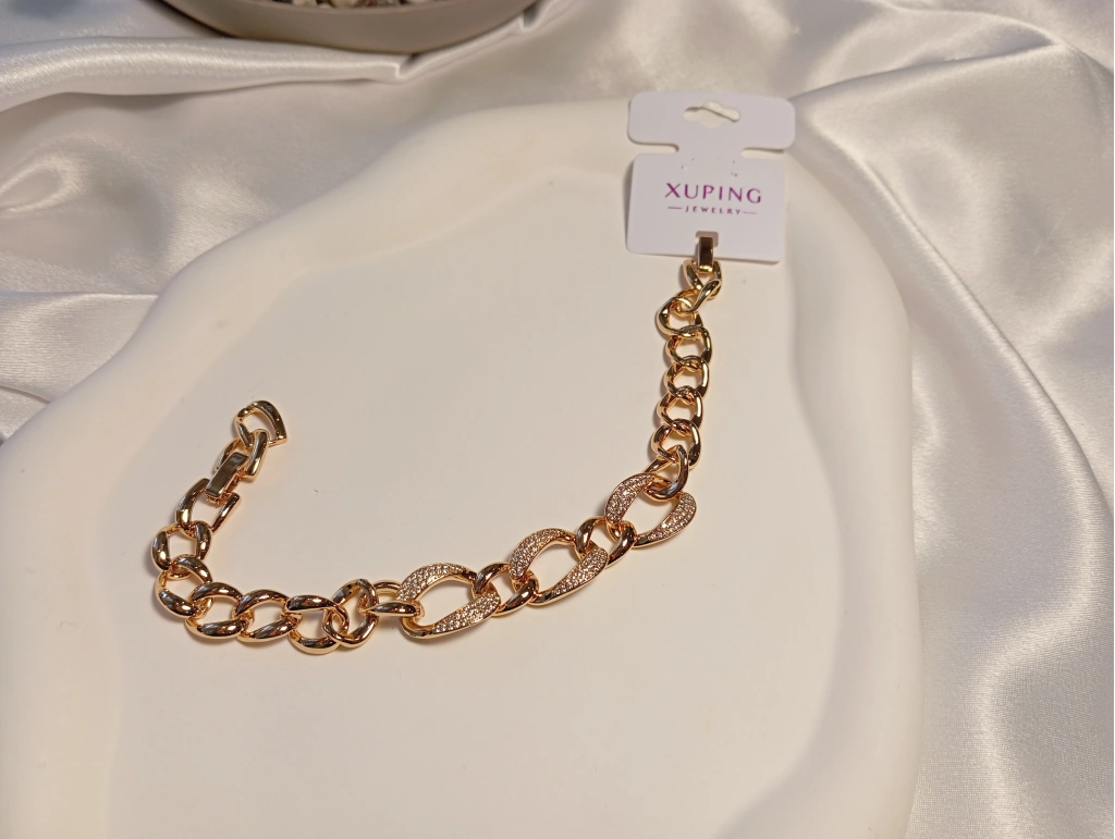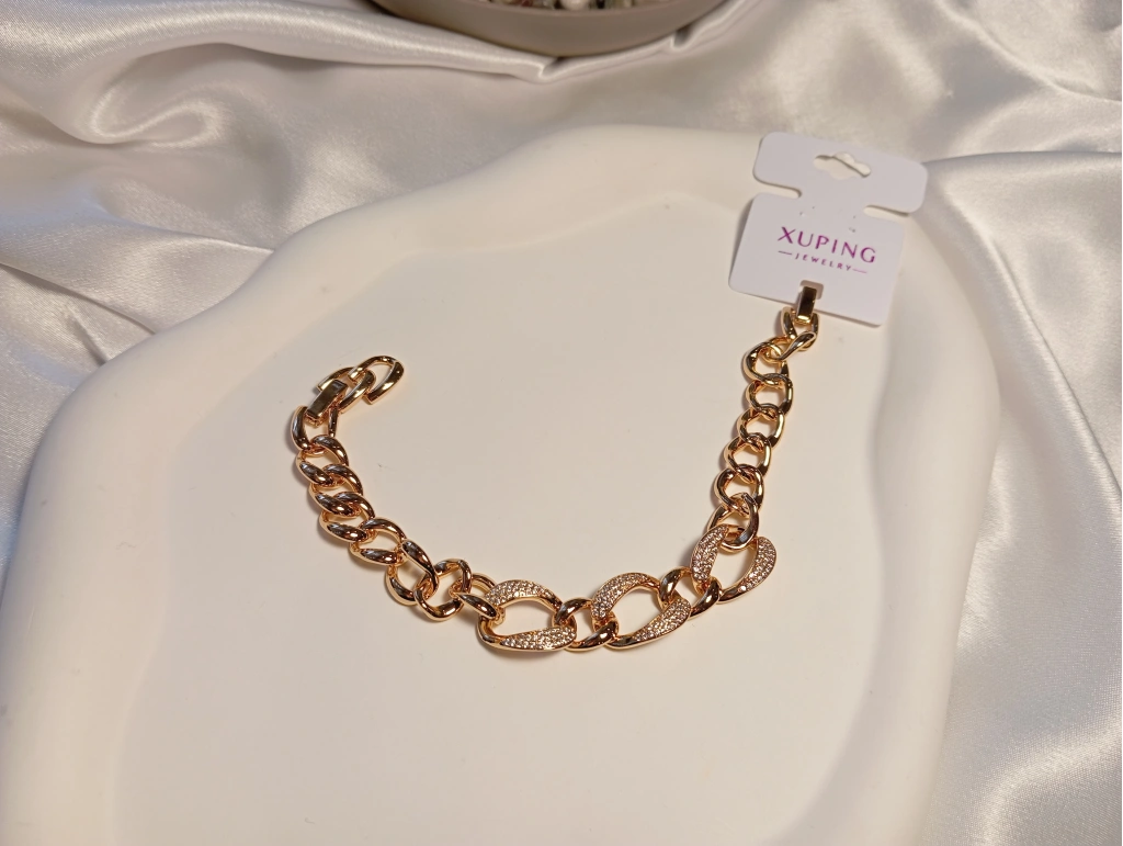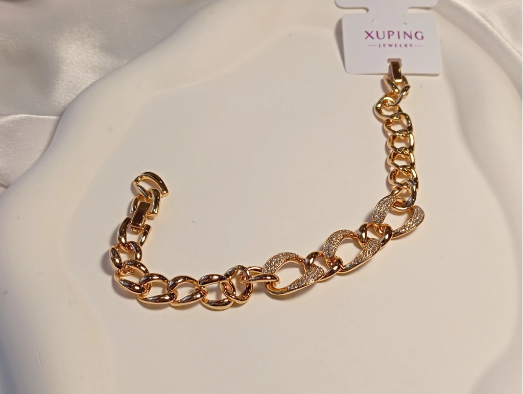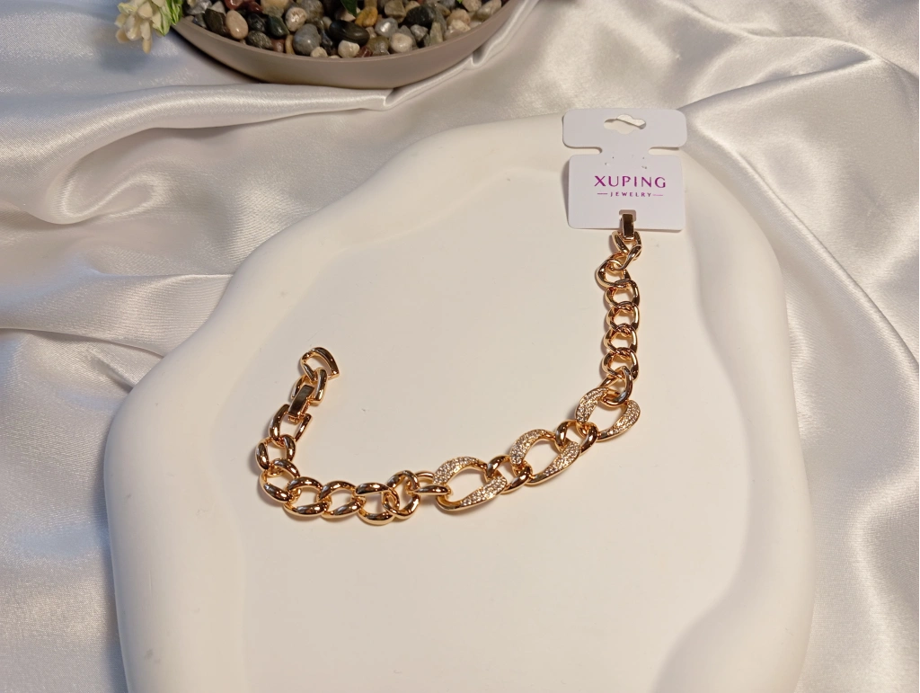 Bileğinizde güçlü ve sofistike bir duruş! Euro Aksesuar kalitesiyle sunulan bu Xuping Jewelry bileklik, ikonik geçmeli zincir (link chain) tasarımını, göz alıcı zirkon taş ışıltısıyla yeniden yorumluyor.