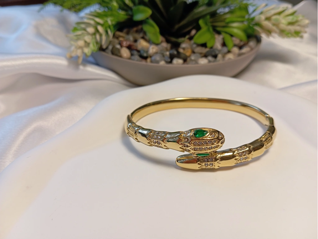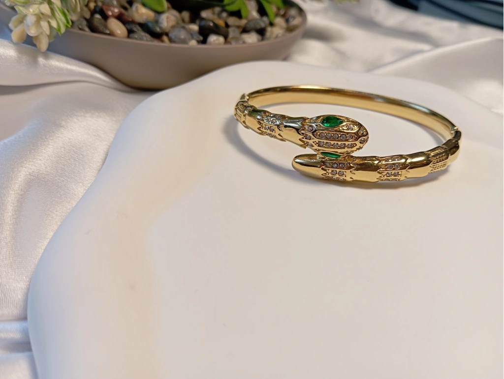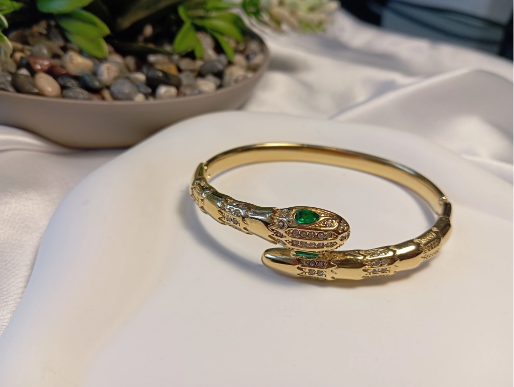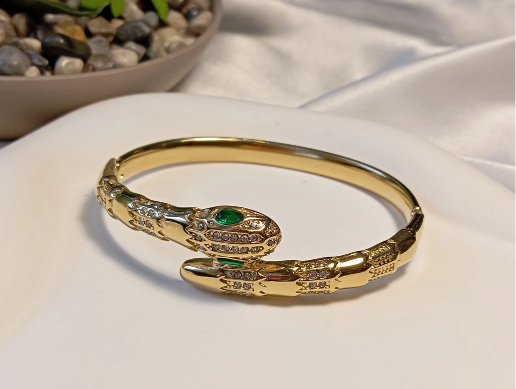 Yeşil Gözlü Yılan Detaylı Zirkon Taşlı Çelik Kelepçe Bileklik – Euro Aksesuar