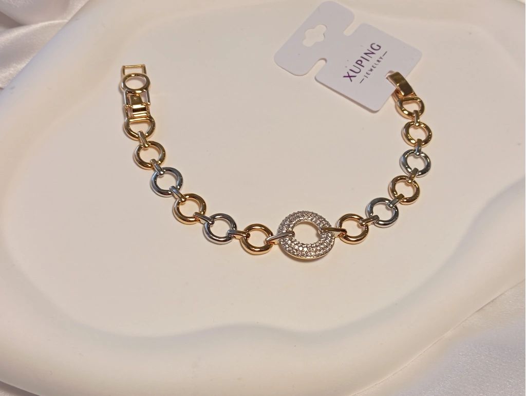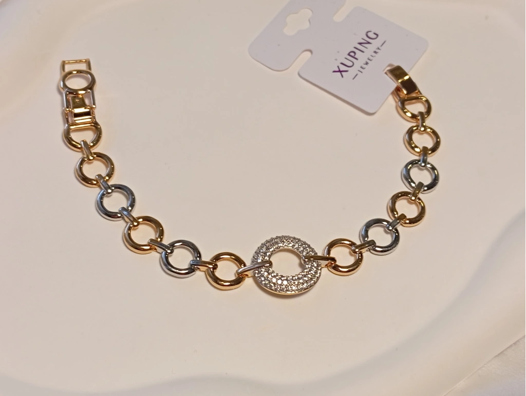 Zirkon Taşlı Halka Detaylı Gümüş ve Rose Renk Xuping Bileklik (17-19 cm) – Euro Aksesuar